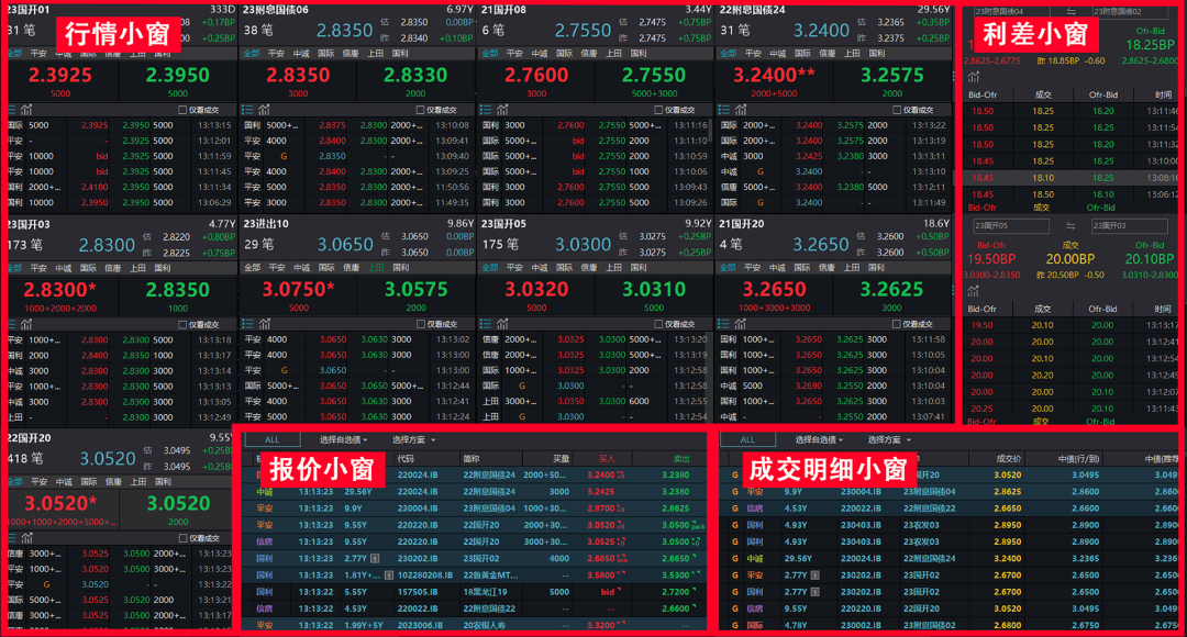 1、新上线个券行情、利差小窗以及BBQ报价、成交排名、成交明细小窗;