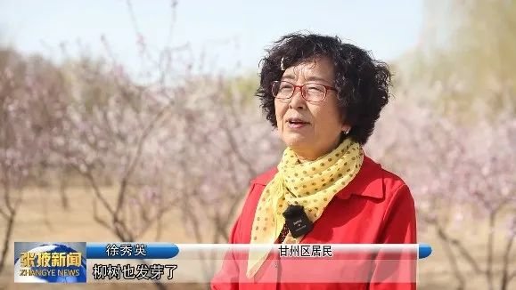 甘州区居民 徐秀英:“柳树也发芽了,桃花儿也开了,杏花儿也开了,我们姐妹们出来转一转、看一看,心情也特别好。”