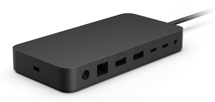 Surface Thunderbolt 4为灰黑色,正面一侧设计有微软Logo,重410g,尺寸为150x75x21.3mm,线长80cm,并配备LED充电指示灯。扩展坞配备165W电源适配器,不过最高只能以96W功率为连接的设备充电。扩展坞与电源适配器外壳使用了20%的海洋回收塑料,并在包装材料中取消了一次性塑料的使用,更加环保。