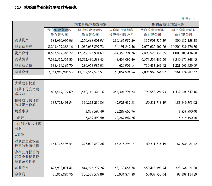 据公开信息,2016年11月,宇信科技出资7560万元认购湖北消金6000万股股份,持股比例为12%,2019年12月,宇信科技再度以9420万元认购湖北消金6000万股,持股比例变更为12.77%。另外,宇信科技全资子公司天津宇信易诚持有晋商消金20%股权。