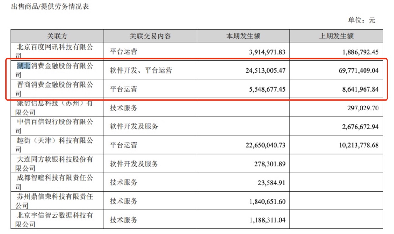 财报显示,2022年,宇信科技与湖北消金、晋商消金均发生大额关联交易,合计3006.2万元。