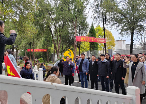 在革命烈士纪念碑前,韩京带领全体党员重温入党誓词,一字一句都表达着对党的无限忠诚,坚定为党的教育事业奋斗终生的理想信念。