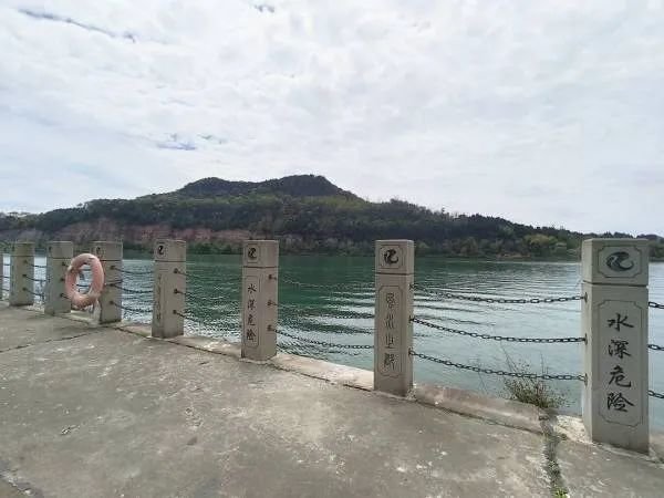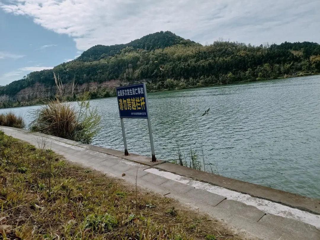 (事发地嘉陵江边有柱子和铁链相连形成防护栏,柱子上刻有“水深危险”“禁止攀爬”等字样,江边警示牌写有“请勿跨越栏杆”字样。)