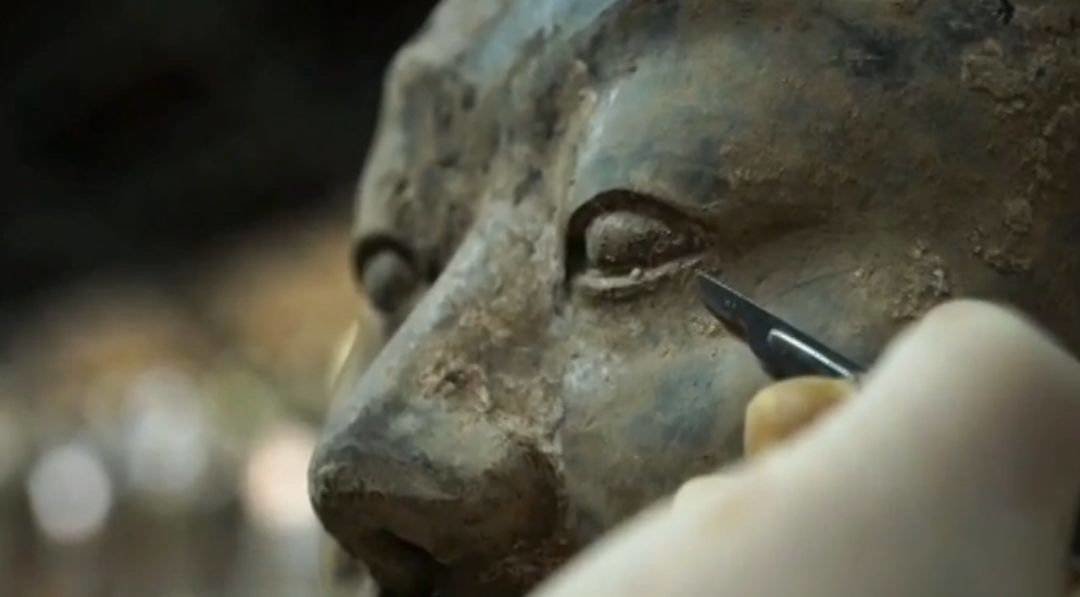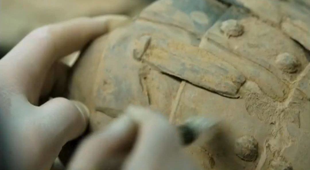 文物修复师重现兵马俑的过程(视频截图)