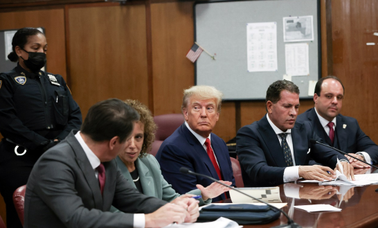 ▲特朗普在纽约曼哈顿刑事法院接受问讯。