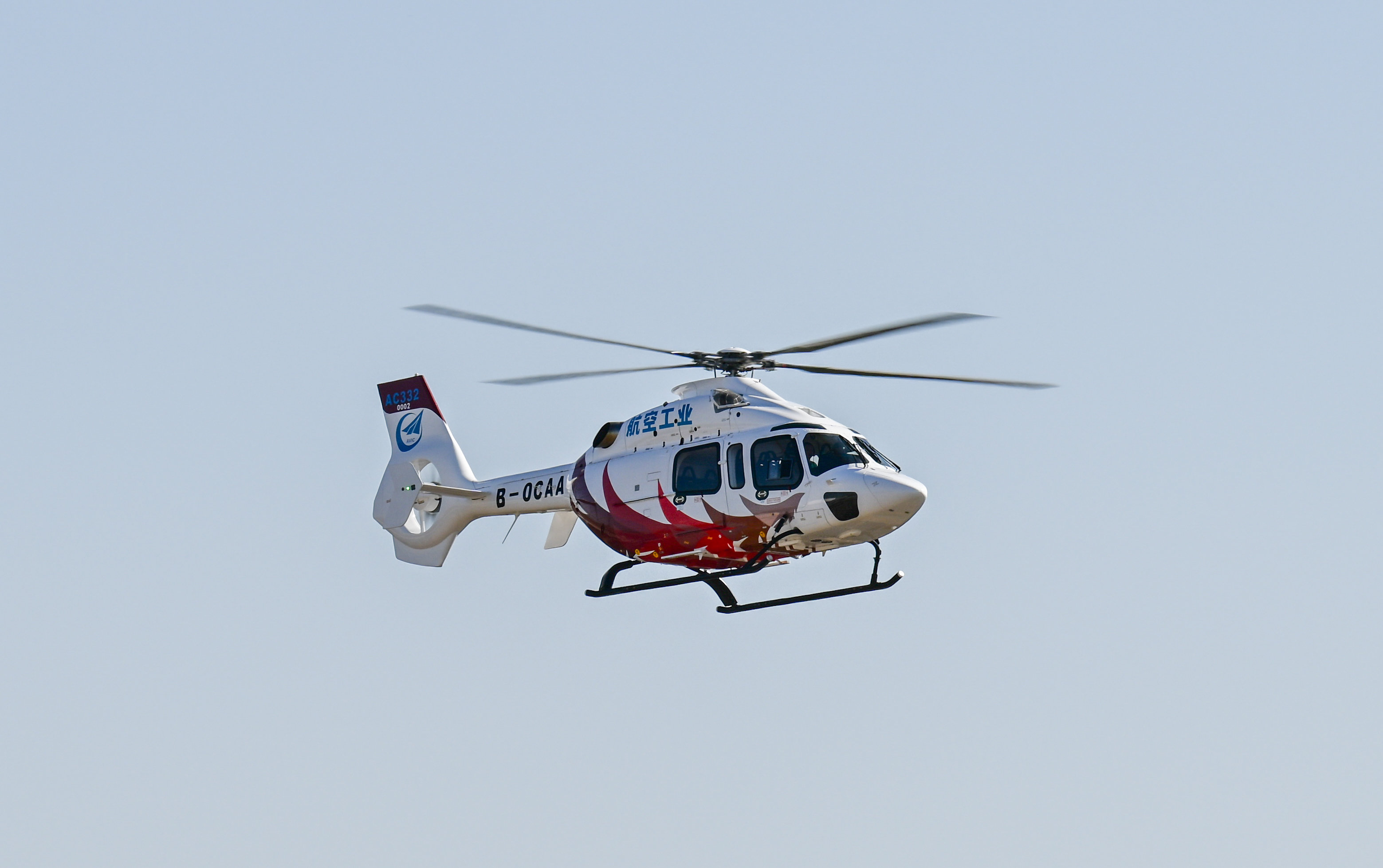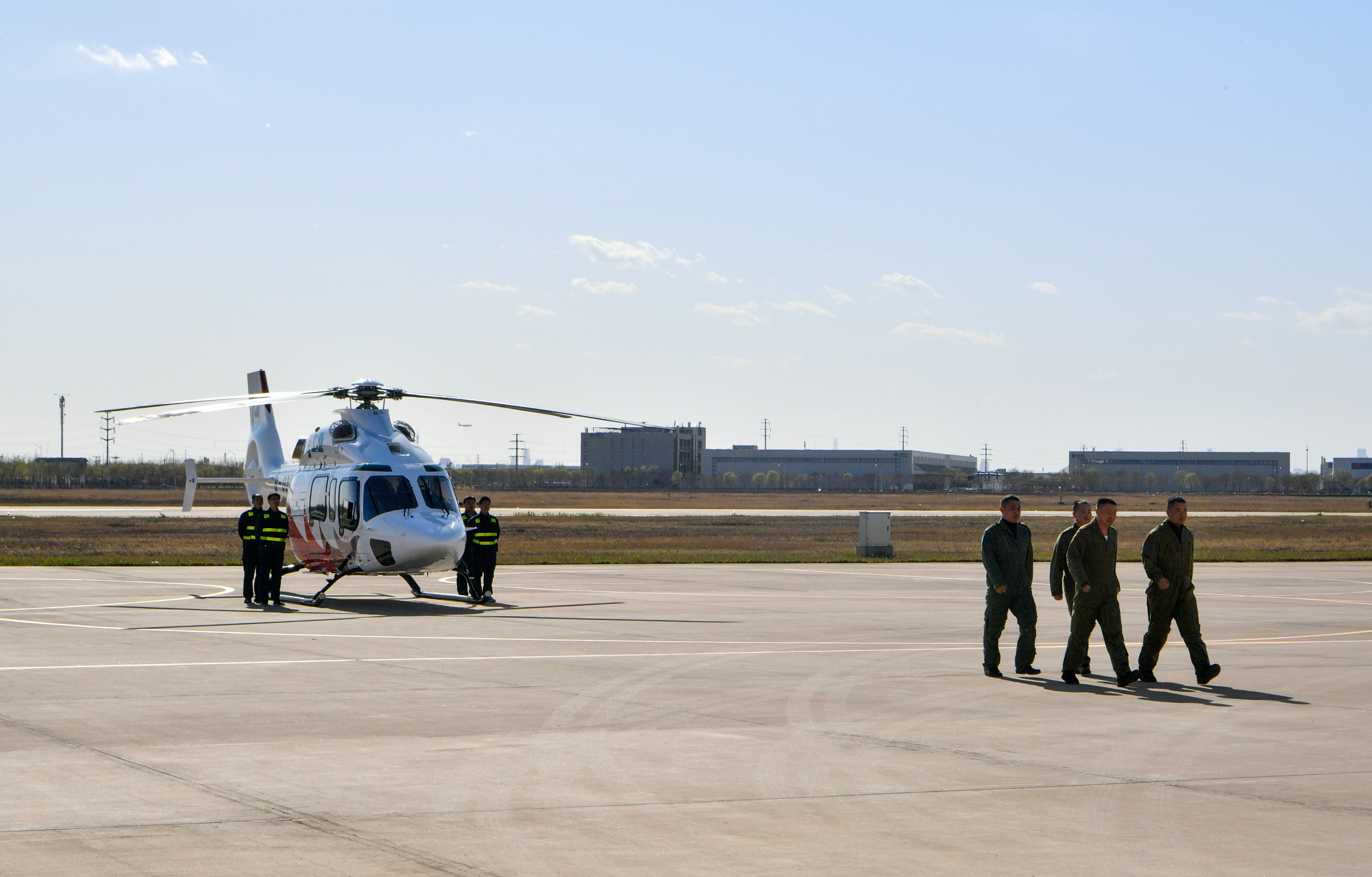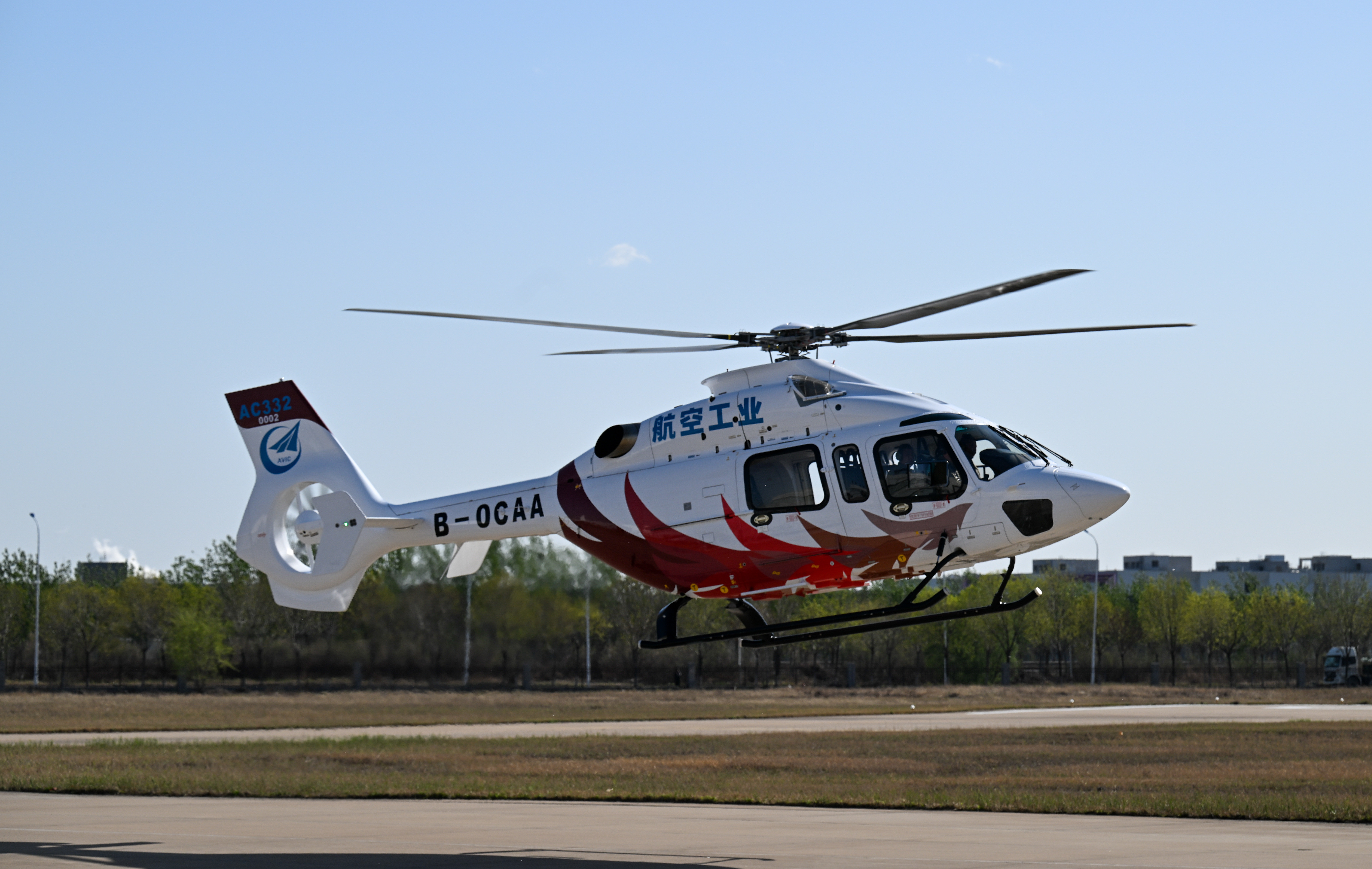 4月7日,在航空工业天津直升机有限责任公司,“吉祥鸟”AC332直升机进行全状态首飞。新华社记者 孙凡越 摄