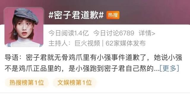 网友对此议论纷纷,“密子君道歉”话题词冲上热搜第一。