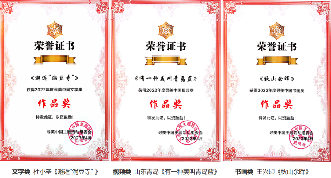4月7日,2022年“寻美·中国”主题活动总结表彰暨2023年“寻美·中国”再出发启动仪式在天津隆重举行。“寻美·中国”启动仪式山东设分会场151个,其中省级分会场1个,市级分会场16个,县级分会场59个,其他75个,2660人线下参加活动。山东喜获2022年“寻美·中国”主题活动五项殊荣。