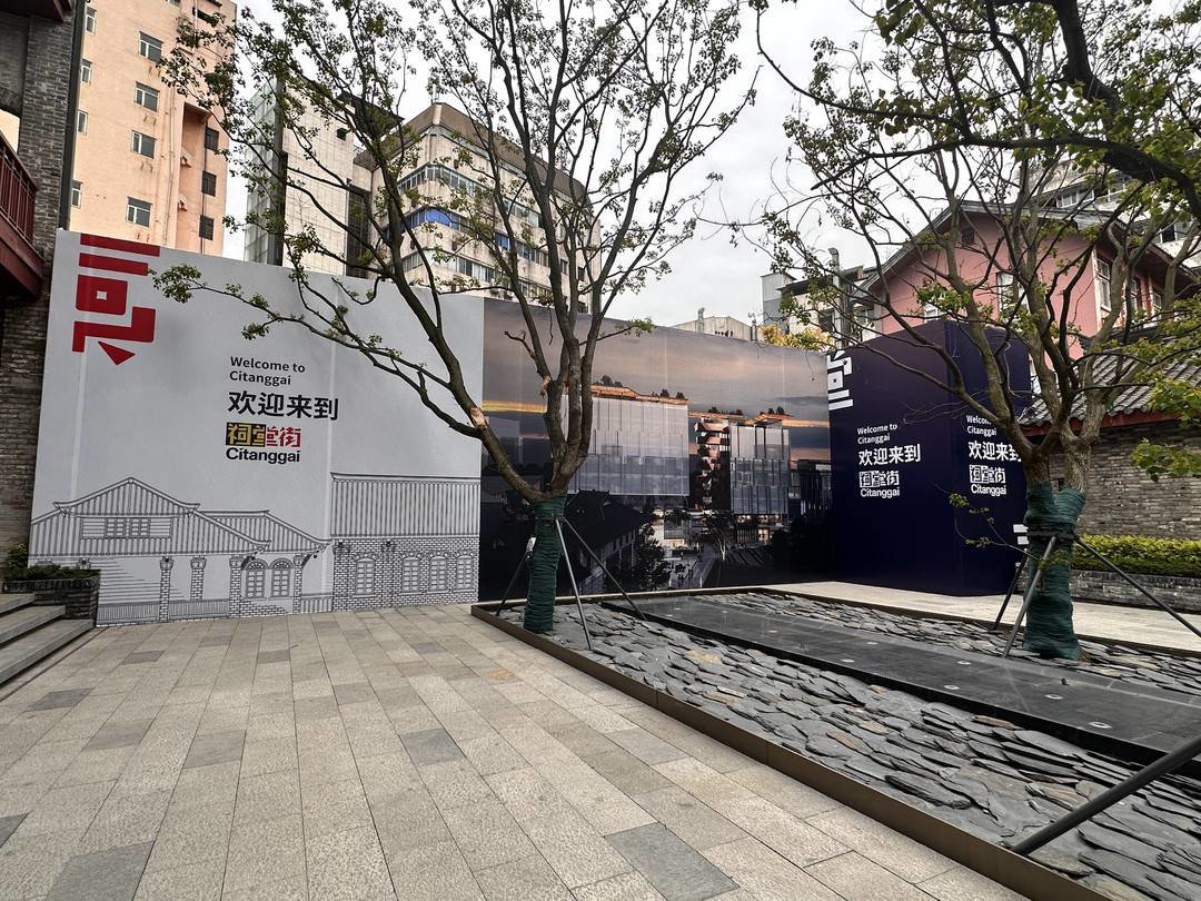 4月7日,封面新闻记者来到祠堂街实地探访。青砖红门,在两栋仿古建筑的中间,打围板上写着“welcome to citanggai,欢迎来到祠堂街”,而在“祠堂街”三个汉字的下方,写着“citanggai”。