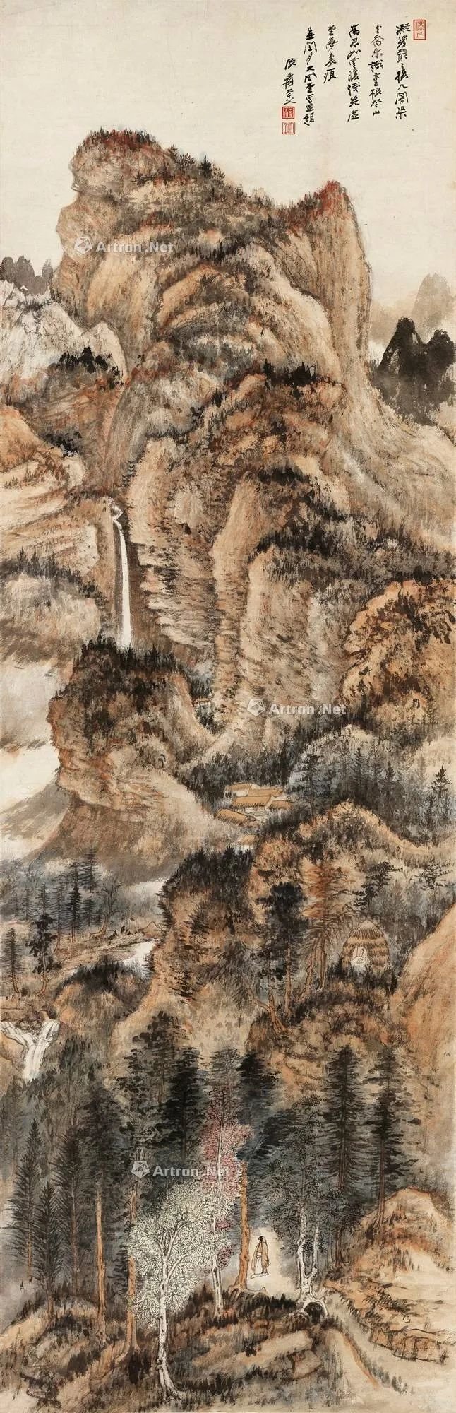 罗家伦旧藏张大千《秋山图》,以1618万港元成交。该作写于1949年,为非常精彩的仿王蒙作品,可谓是大千“血战古人”的佳作;