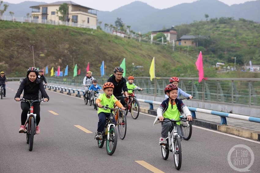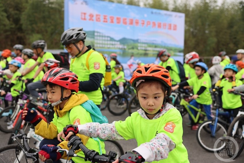 4月8日,江北区五宝镇2023年御临湖亲子骑行活动,在“最美赛道”御临湖至沿江路进行。来自全市的200余名骑行爱好者以亲子家庭形式参加活动,参与家长陪着孩子们体验大自然,享受骑行的乐趣和亲情的温暖。