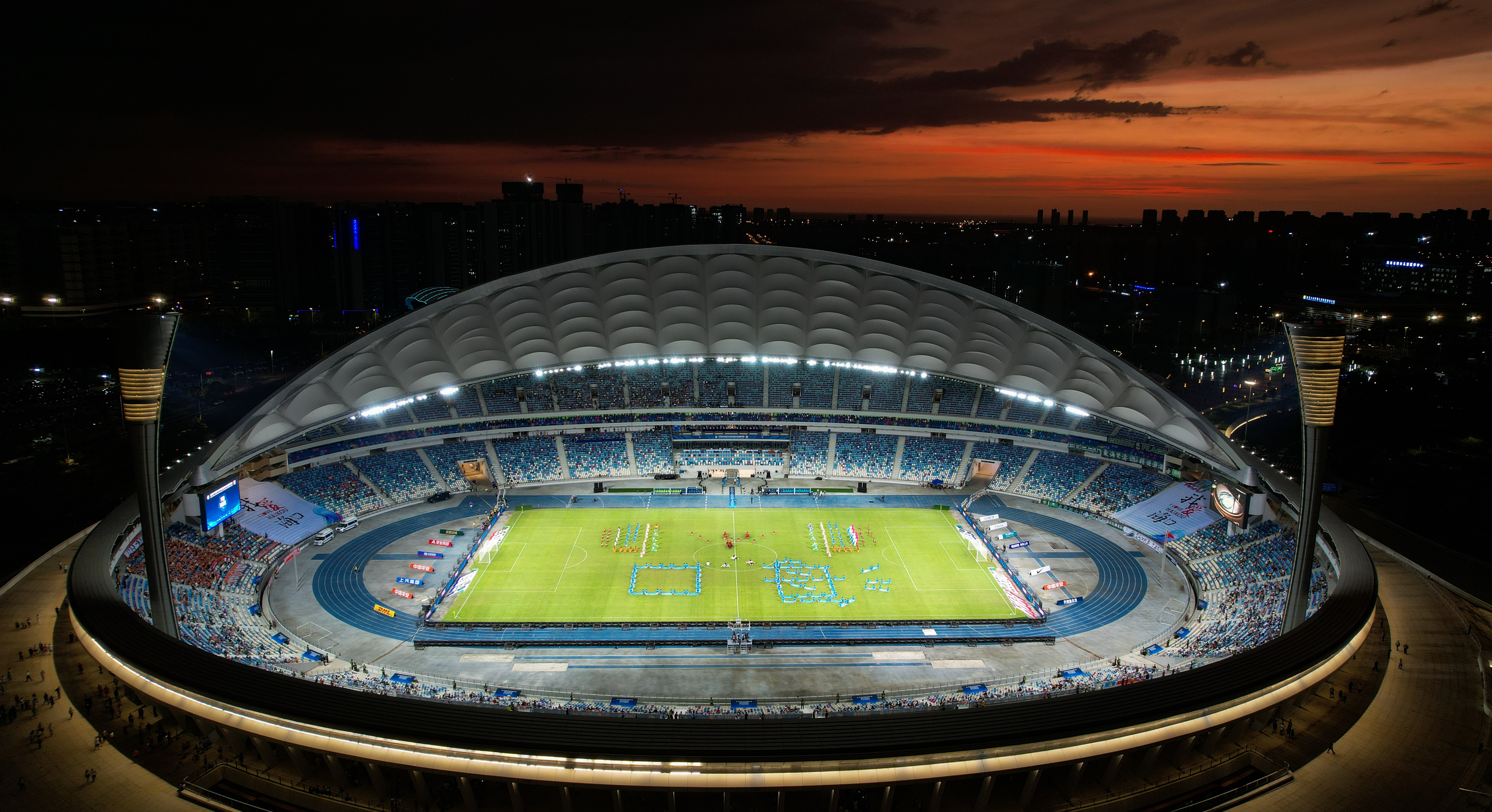 2022年6月3日,2022赛季中国足球协会超级联赛开幕式在海口五源河体育场举行(无人机照片)。新华社记者 杨冠宇 摄