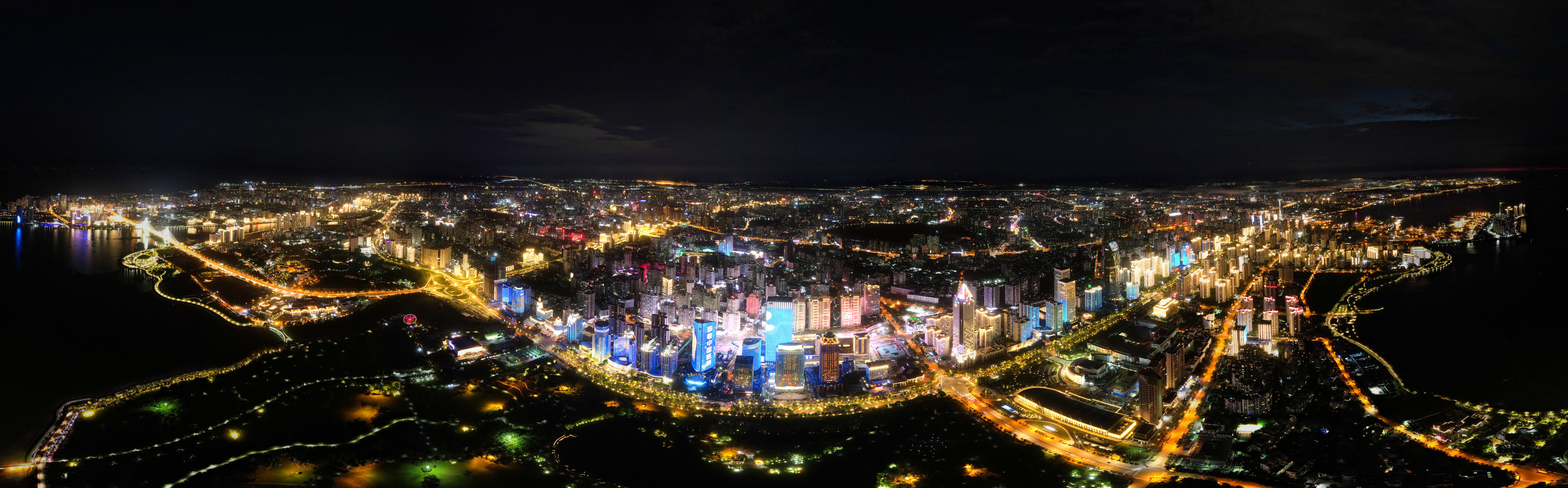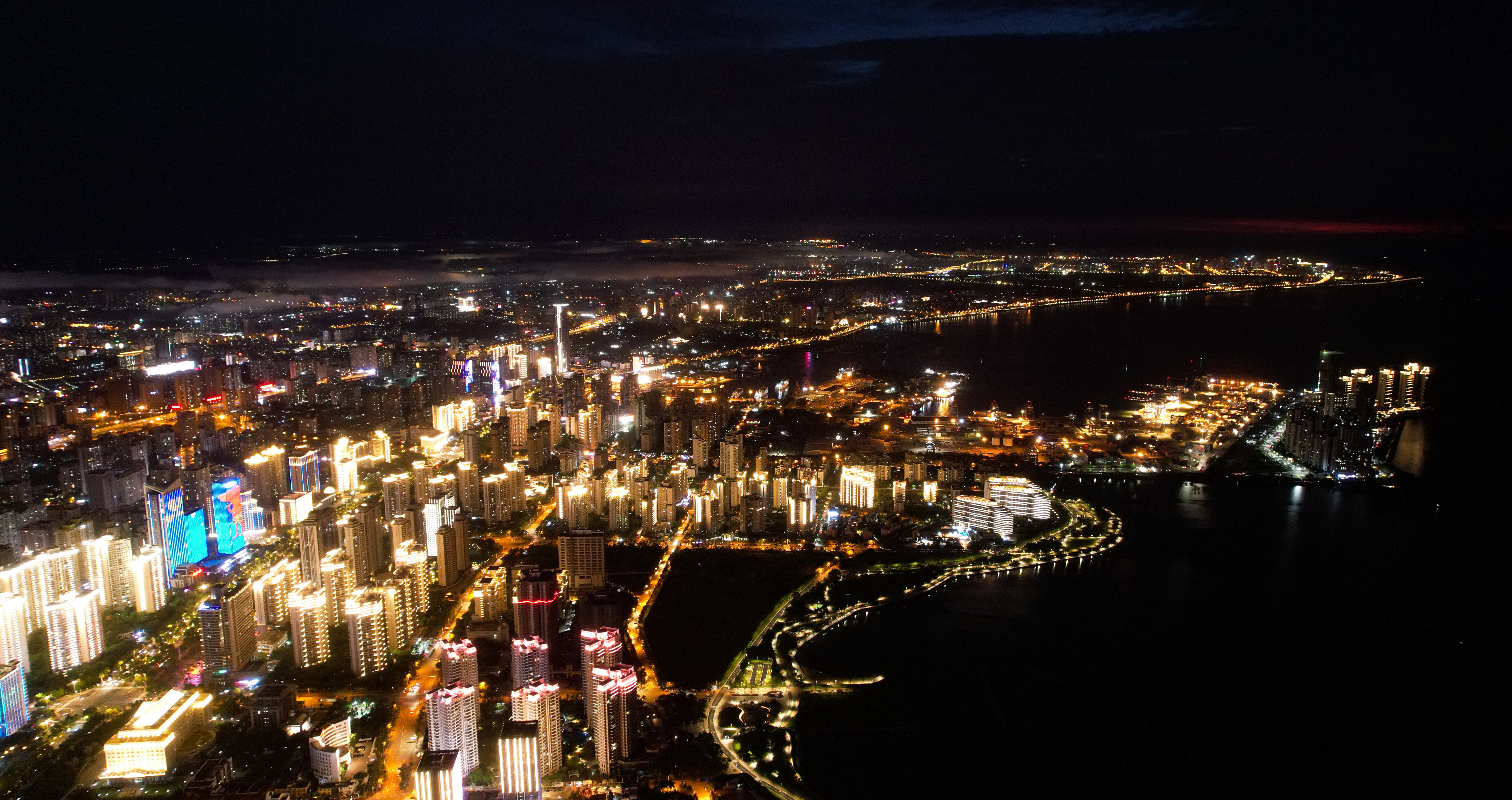 海口市区夜景(2022年8月19日摄,无人机照片)。新华社记者 杨冠宇 摄