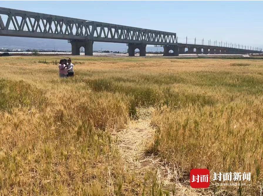 现场,有几名游客为拍到心仪的照片,进入了麦田中。“你可以沿着他们踩过的路走过来,不要踩到其他麦子。”一名正在拍照的女士招呼同伴前来拍照,而她所站的地方,就是一片倒下的麦子。
