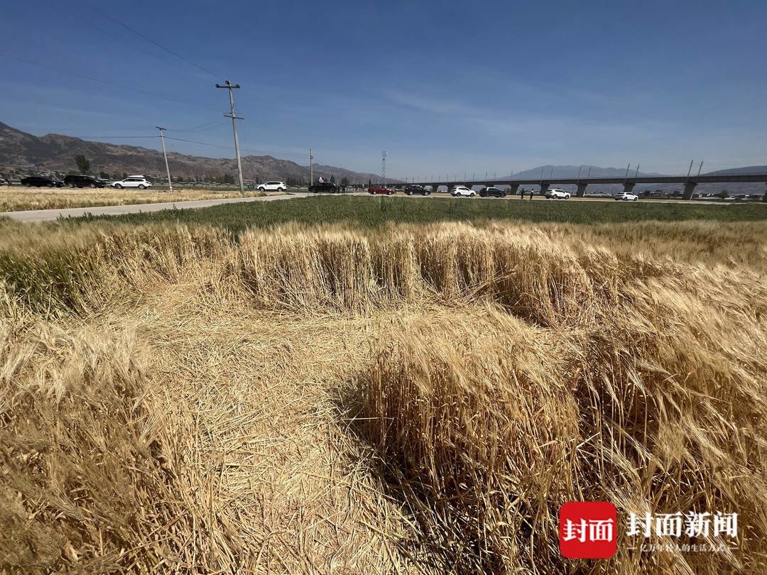 看着一片片倒下的大麦,村民张大哥直呼“太可惜”,“好好的麦子就被踩倒了,有田坎不走非要去踩里面的地。”
