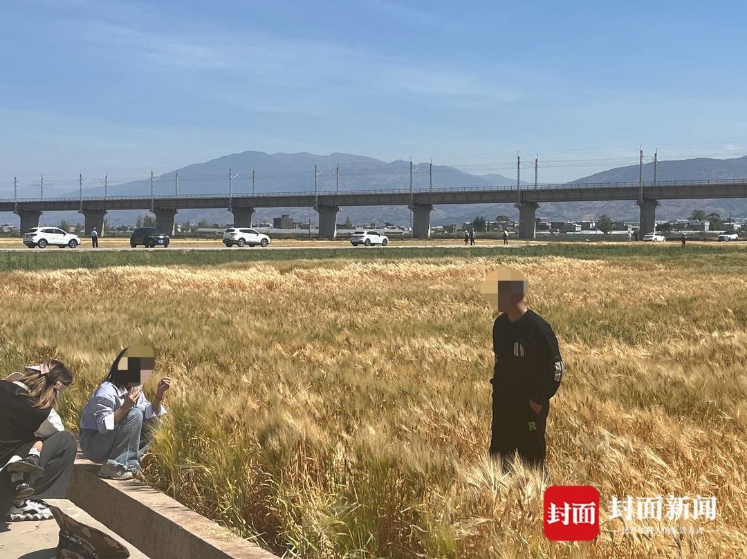 4月7日,封面新闻记者在现场看到,现场,有不少游客正在麦田边游览拍照。这里每一块麦田中都有可供行走的田坎,麦穗茂密,蓝天白云下,即使站在田坎上也可拍出较为理想的画面。且该处麦田周围皆为农作物种植区,并不存在相应的旅游基础设施。“这附近没有厕所,要买吃的也要走到公路上才能买。”一位过路的村民说。