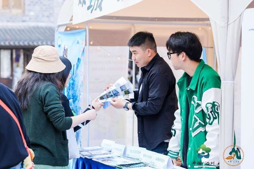 热闹的市集氛围里,现场市民游客了解到九华山、大愿文化园、九子岩、莲峰云海、清源山、九华神龙谷、天下粮仓、青通河山水画廊、陵阳古镇等自然人文景观,欣赏了青阳农民画、大九华水磨玉骨绢扇等非遗制作技艺,品尝了别具风味的地道美食,感受到特色文创产品中文化与旅游的生动融合,并在美陈打卡点沉浸式拍照打卡。在双城情报站,九华山风景区、青阳县文旅景区、旅行社与合肥本地旅行社、文旅企业自由洽谈、精准对接,达成了多项合作意向。