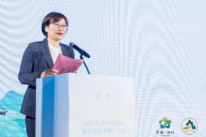 九华山风景区管委会副主任王师琴在致辞中强调,希望能通过这次机会,展示更加丰富的旅游线路产品、更为优惠的旅游政策、更富魅力的非遗展演、更具特色的地域美食,吸引更多游客来九华山、青阳旅游休闲观光、研学康养。