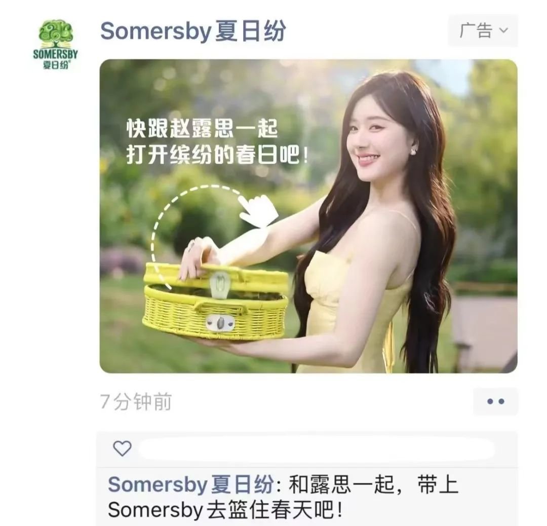 作为国内95后知名女演员代表,赵露思通过热播剧,广受年轻消费者熟知和喜爱,其微博和小红书拥有近4000万粉丝。她屏幕上活力时尚、阳光乐天的个性,和SOMERSBY夏日纷“打开就有阳光”的品牌调性高度契合。