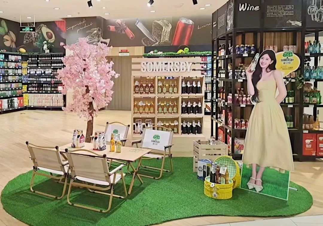 360度的传播,还需要有渠道的支持完成最后一公里的搭建。SOMERSBY夏日纷将春日野餐场景搬进商超,直接唤醒消费者对野餐的渴望,用场景式堆头令品牌形象更加生动具体。