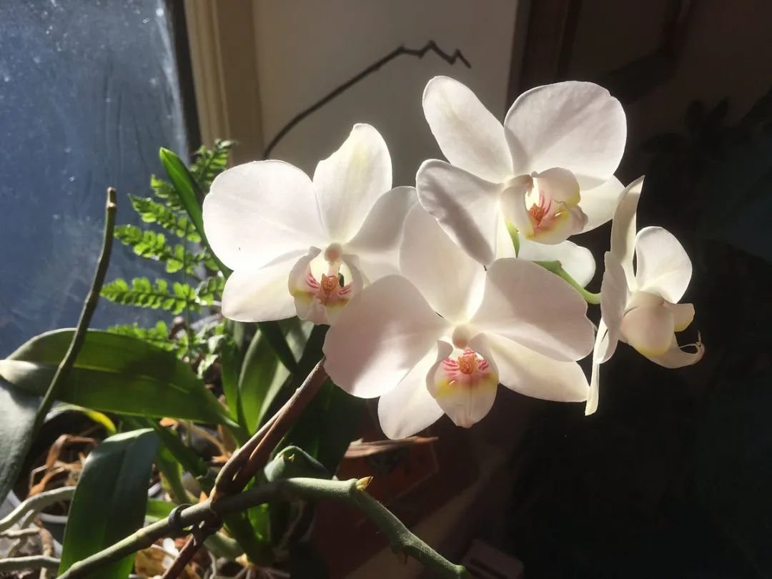 后期蝴蝶兰就养在窗台边,可以给适当散射光。