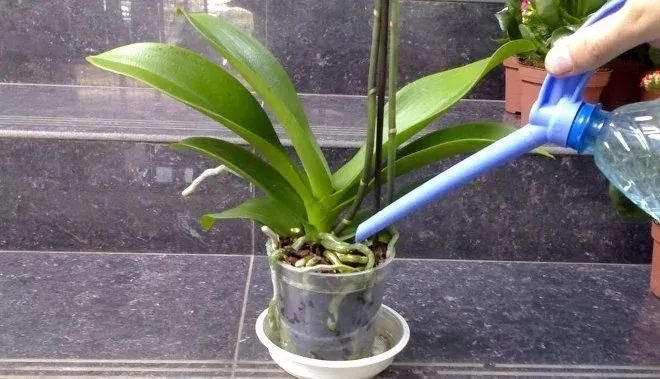 蝴蝶兰开完花之后,就用一个透明的塑料钵养着,透明的塑料盆养蝴蝶兰有非常多的好处,其实就是为了养蝴蝶兰的根系也能继续进行光合作用,不要用一些不透明的花盆养。平常我们养护蝴蝶兰的时候,也可以偶尔往它的根部喷水,它的根可以很好地吸收水分。