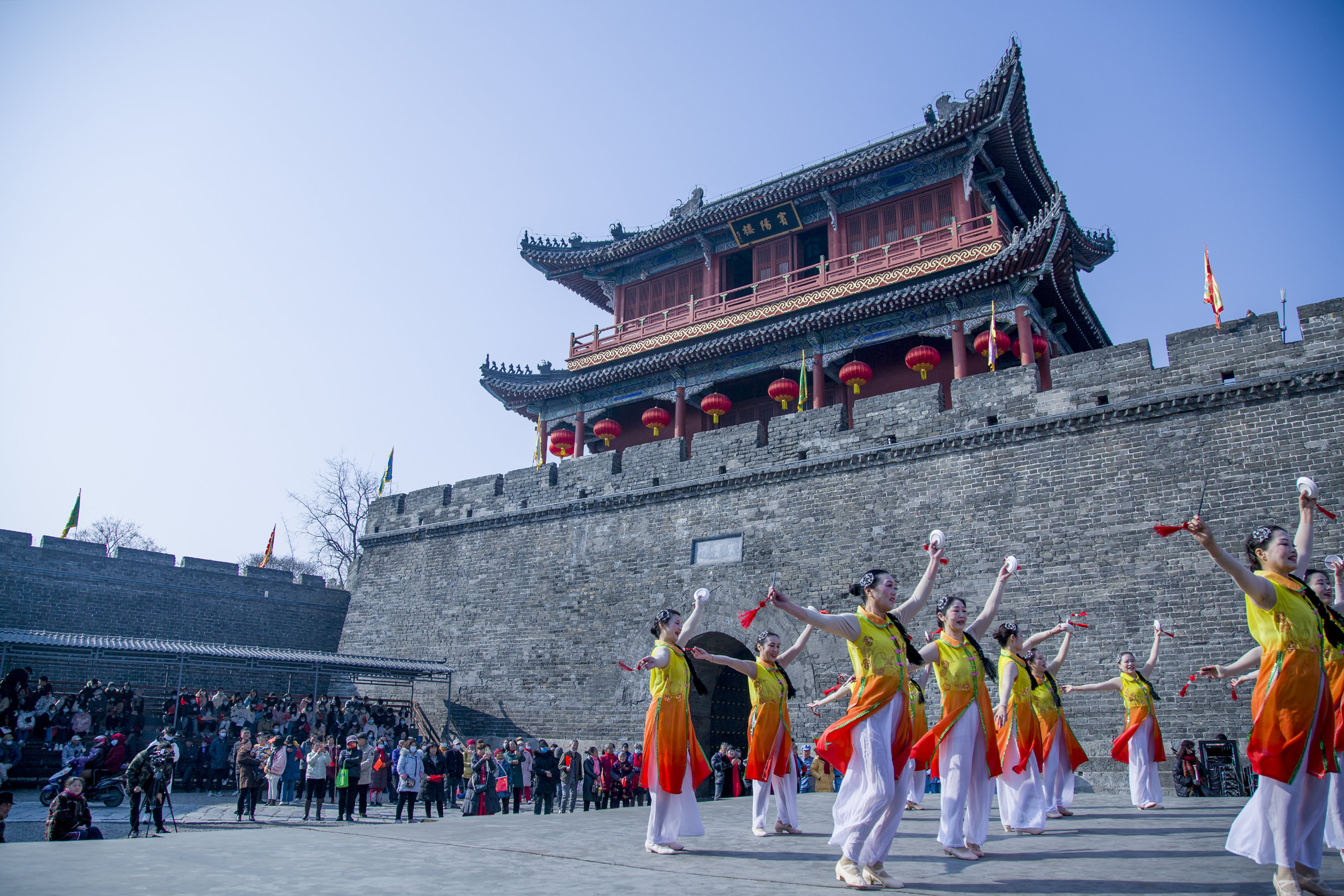荆州古城历史文化旅游区宾阳楼前,正在举行文化活动。(张梦瑶 摄)