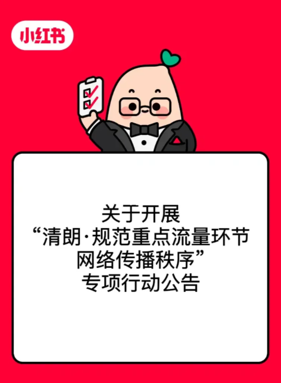 小红书强调将加强PUSH弹窗等重点流量环节治理,全面排查处置违规账号,不断规范平台传播秩序。