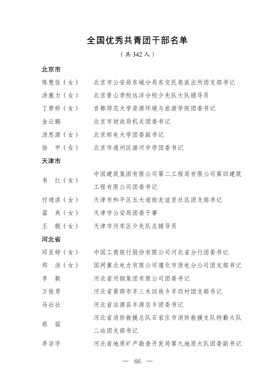 为充分发挥先进典型示范引领作用,激励广大团组织和团员、团干部踔厉奋发、创先争优,共青团中央决定,在五四青年节前表彰一批先进团组织和团员、团干部。经基层团组织推荐、省级团委考察初审、共青团中央复审,提出685个团组织、482名(含追授1名)团员、342名共青团干部的拟表彰名单。现予以公示,公示时间为2023年4月7日至4月13日。