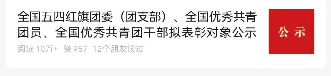 据了解,全国五四红旗团委(团支部)、全国优秀共青团员、全国优秀共青团干部是共青团中央设立的分别授予县级以下团委和基层团组织、团员、团干部的团内最高荣誉。