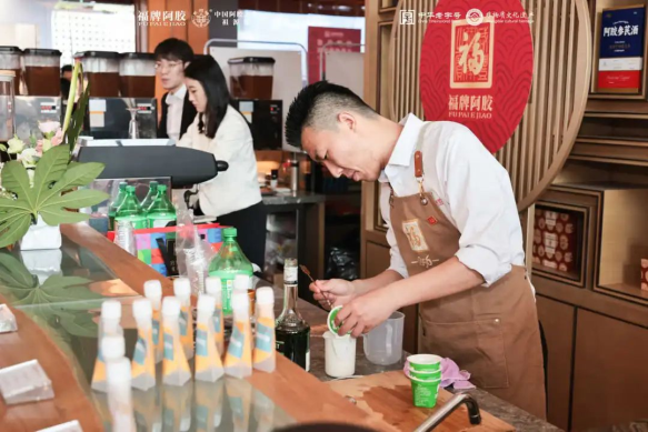 在中心茶歇馆的福牌阿胶展位上,福牌阿胶以破局为题进行“大滋补时代交流会”,与业内同仁一起剖析当代市场趋势,重构品牌力、产品力、服务力、渠道力和模式力组成的“大滋补全新五力增长模型”,围绕大滋补时代的产品创新,分享阿胶4.0概念,以“双参”爆品引领大滋补时代。