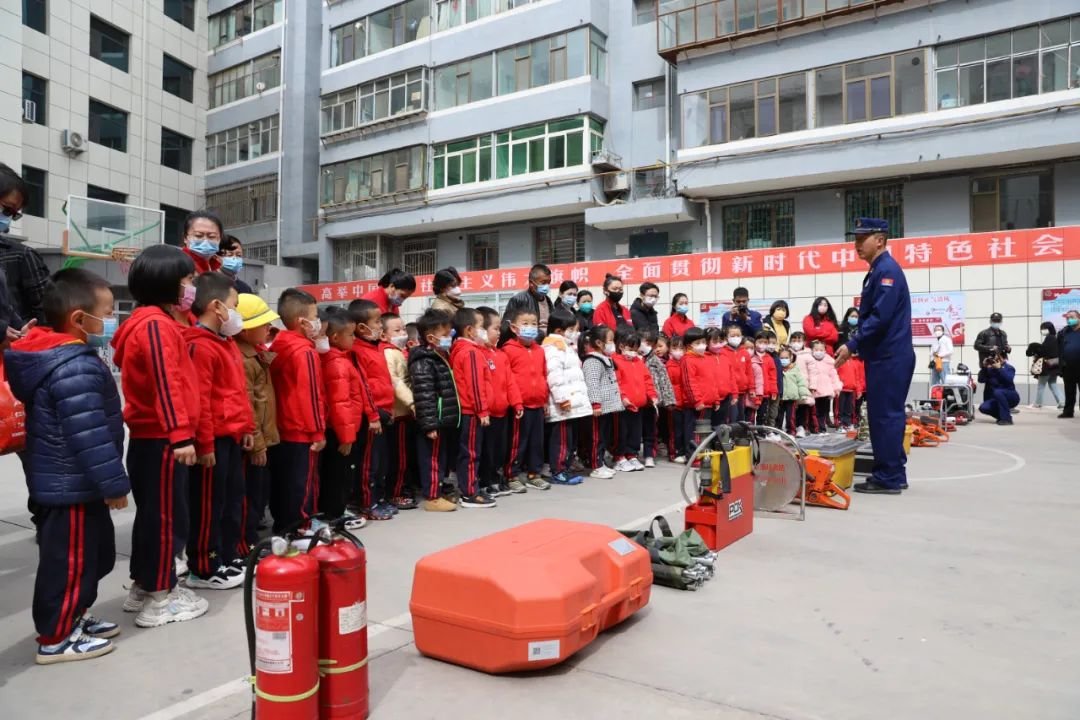白银区消防救援大队的院子里,水枪、便携式灭火器、自持式呼吸器、防护服、破拆工具、急救工具等各类消防器材一字排开,工作人员对每个器材的用途及使用方法逐一进行了讲解,并带领大家“零距离”参观了消防车,让师生、家长获益匪浅。