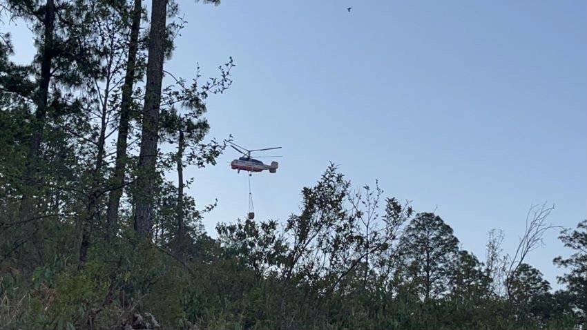 现场启用直升机在邛海取水灭火