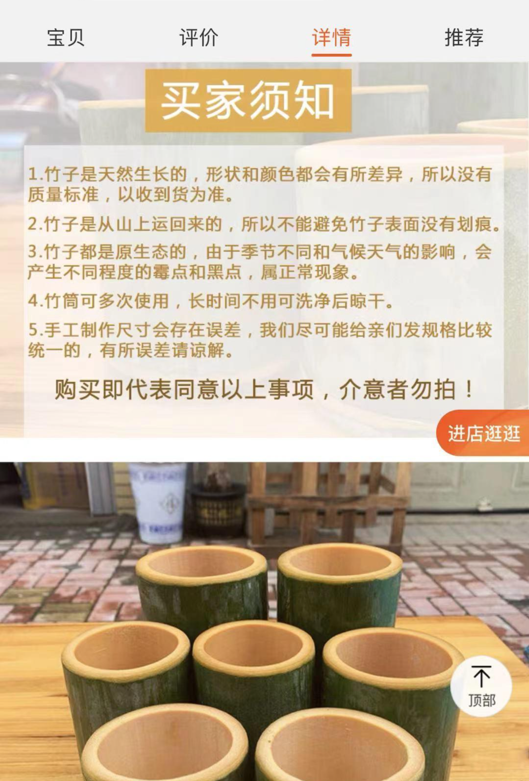 但也有商家表示,发霉了肯定不能用,并建议有条件将竹筒冷藏,或者洗干净晾干放通风处,尽量短期内使用。