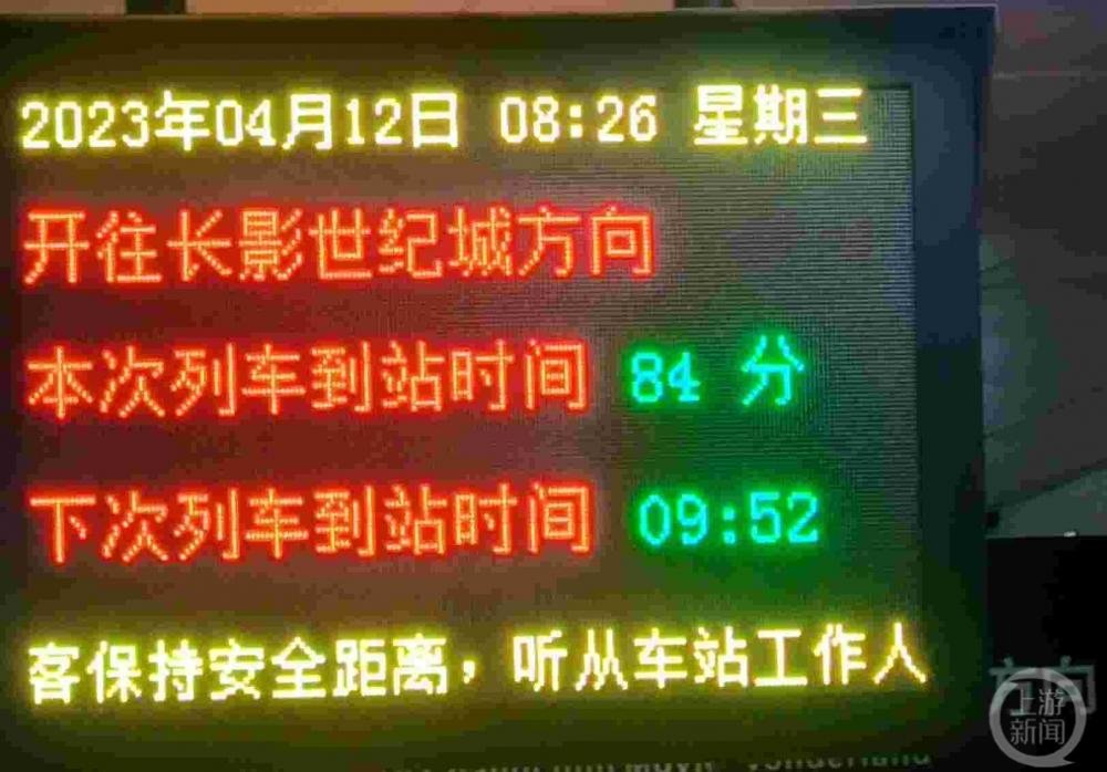 ▲事发后长春轻轨3号线出现晚点情况。图片来源/视频截图