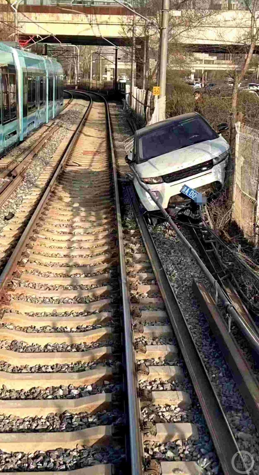 ▲长春一辆路虎冲进轻轨线。 图片来源/视频截图