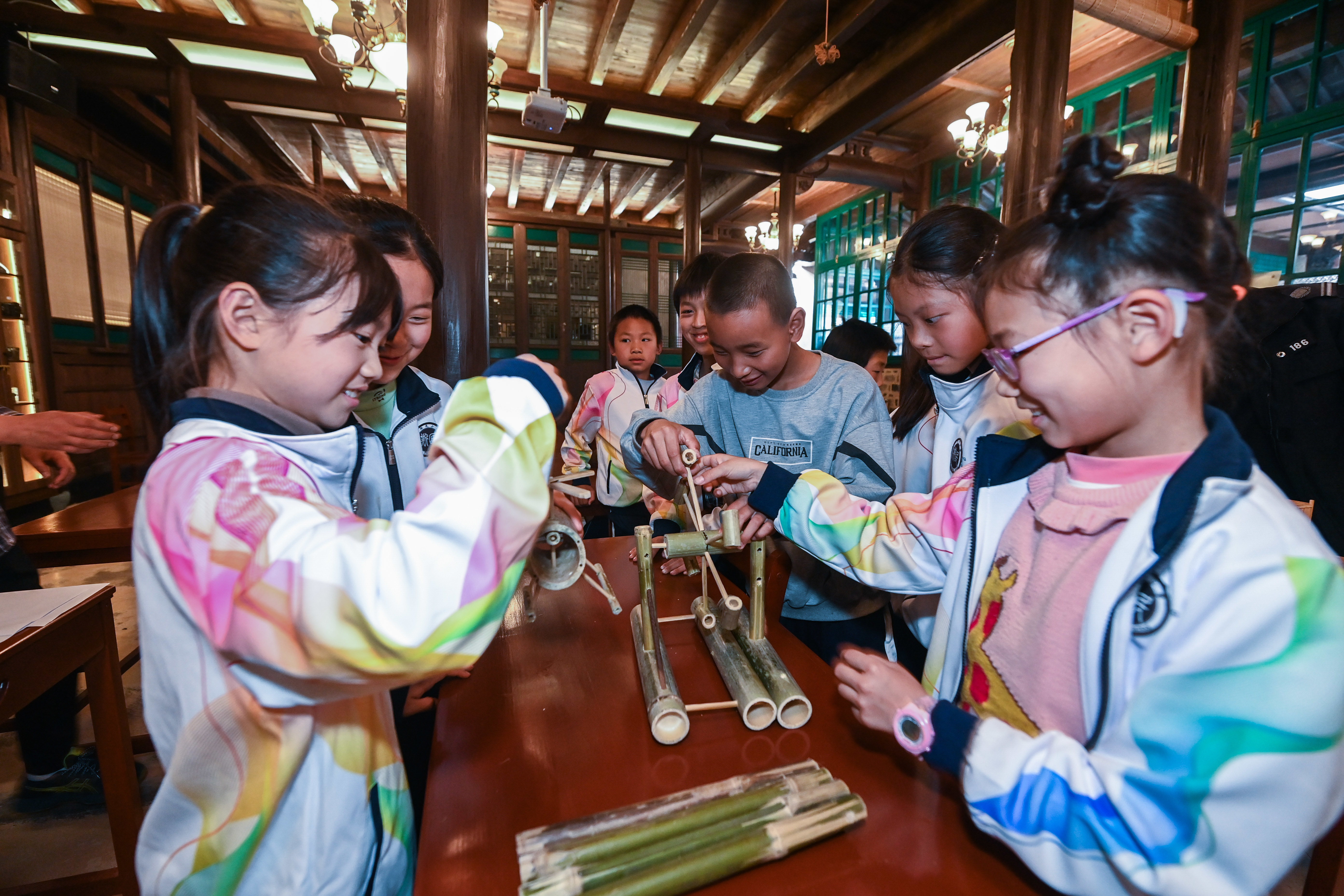 从2023年2月开始,浙江省诸暨市东白湖镇斯民小学开启特色课程项目——“乡村艺课”。学校根据不同学段学生的身心特点与认知规律,从传统、自然、生活出发,开设国画、书法、传统武术、传统手工竹艺等课程,融入了美育、德育、劳育等元素,让乡村学校的孩子通过“乡村艺课”学习和传承中华优秀传统文化。