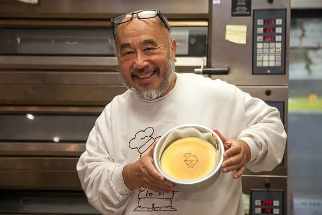 当然,让大家甘之如饴排队的原因,除了日式芝士蛋糕的口感,还有它出炉的形式感,一块价值8.88美元的6英寸芝士蛋糕像刚出生的婴儿一般被小心翼翼的从烤箱里取出来,胖乎乎晃悠悠的散发着香气,之后如护产士一般的工作人员温柔的摇起小铃铛,给每一块充满弹性的芝士蛋糕烫伤创始人Tetsu的漫画。
