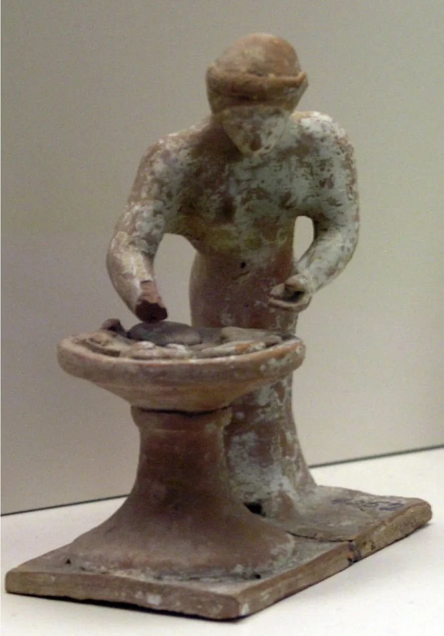 公元前500-475年雕塑,正在揉面团的希腊女人