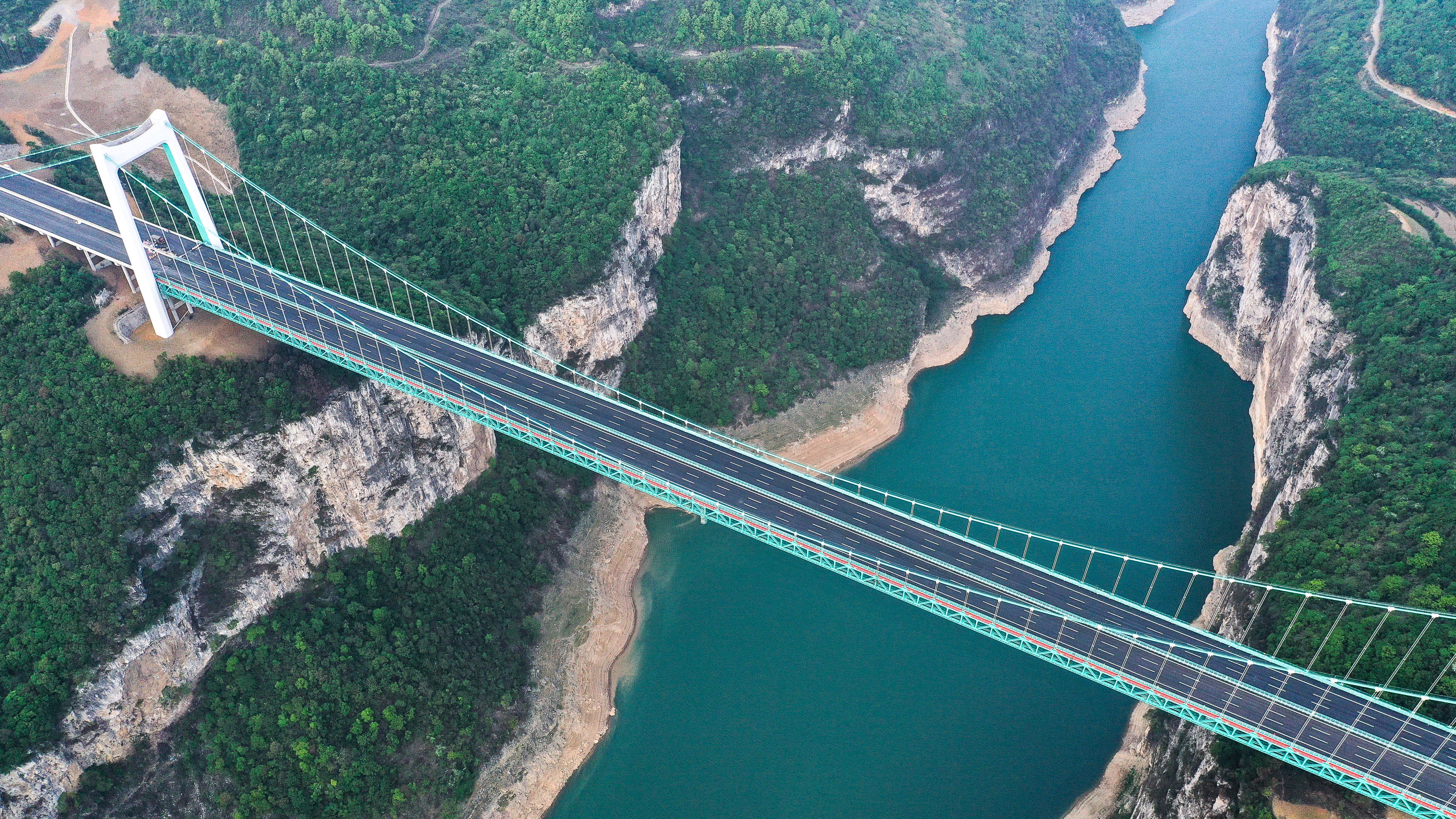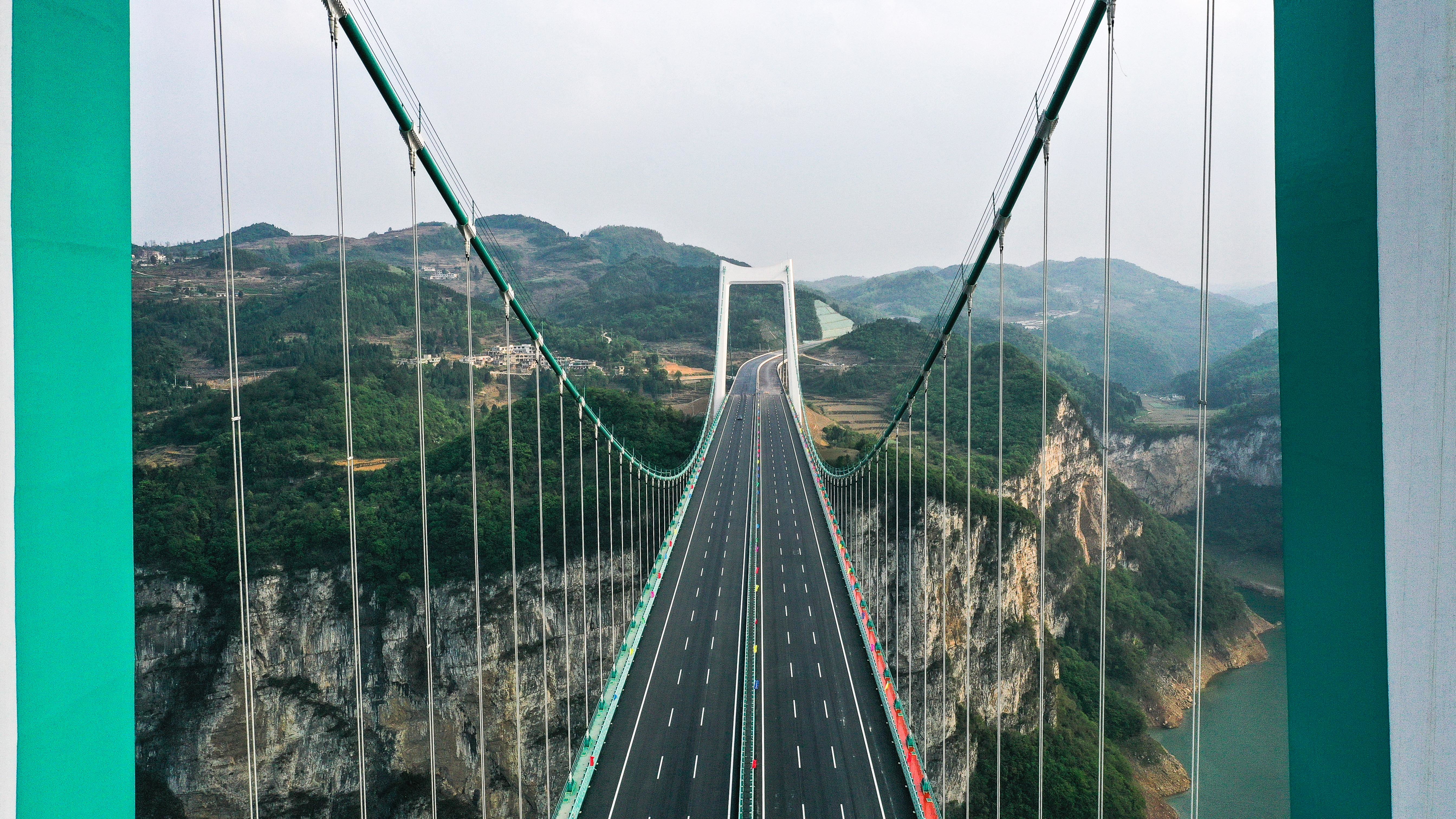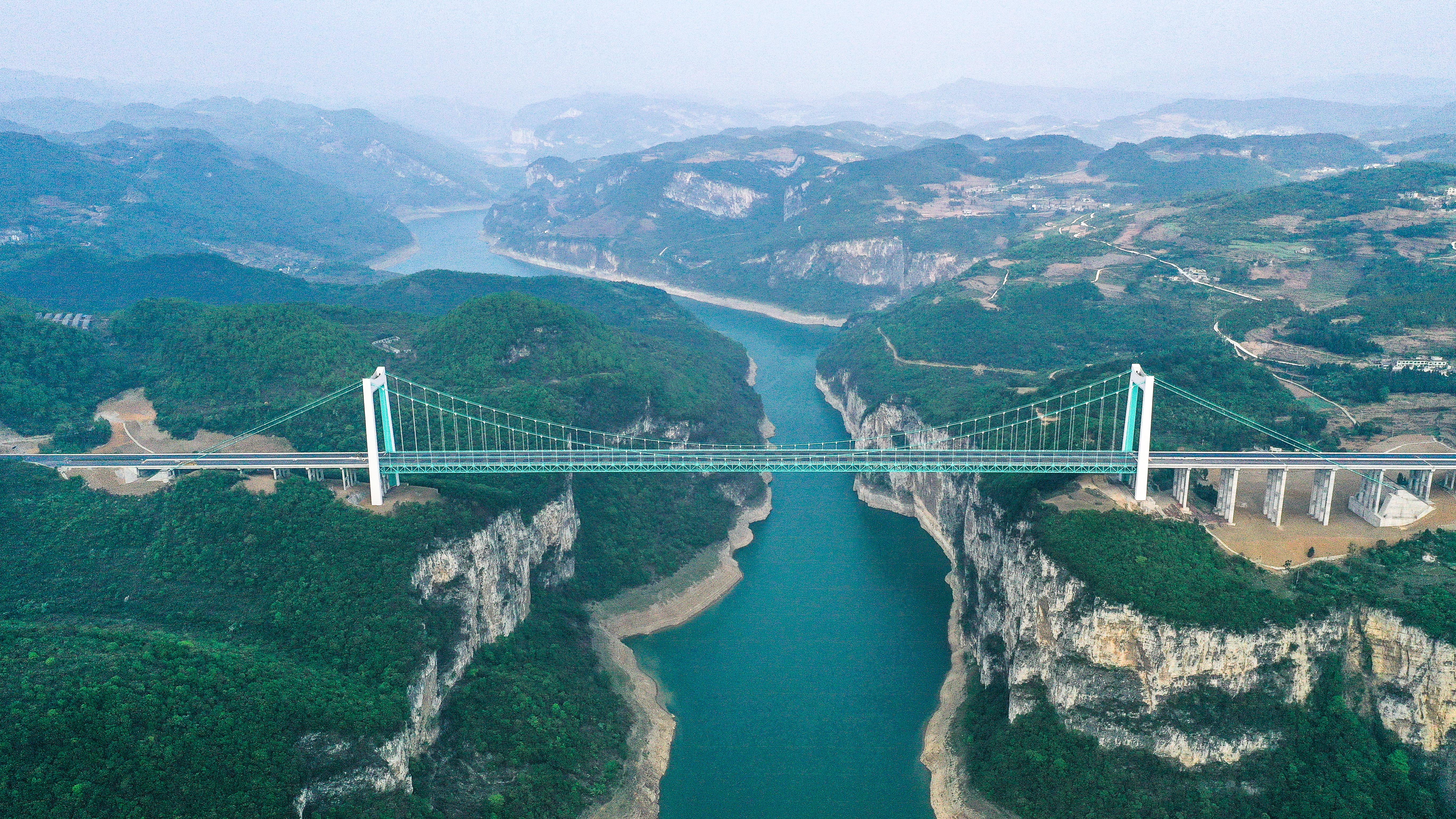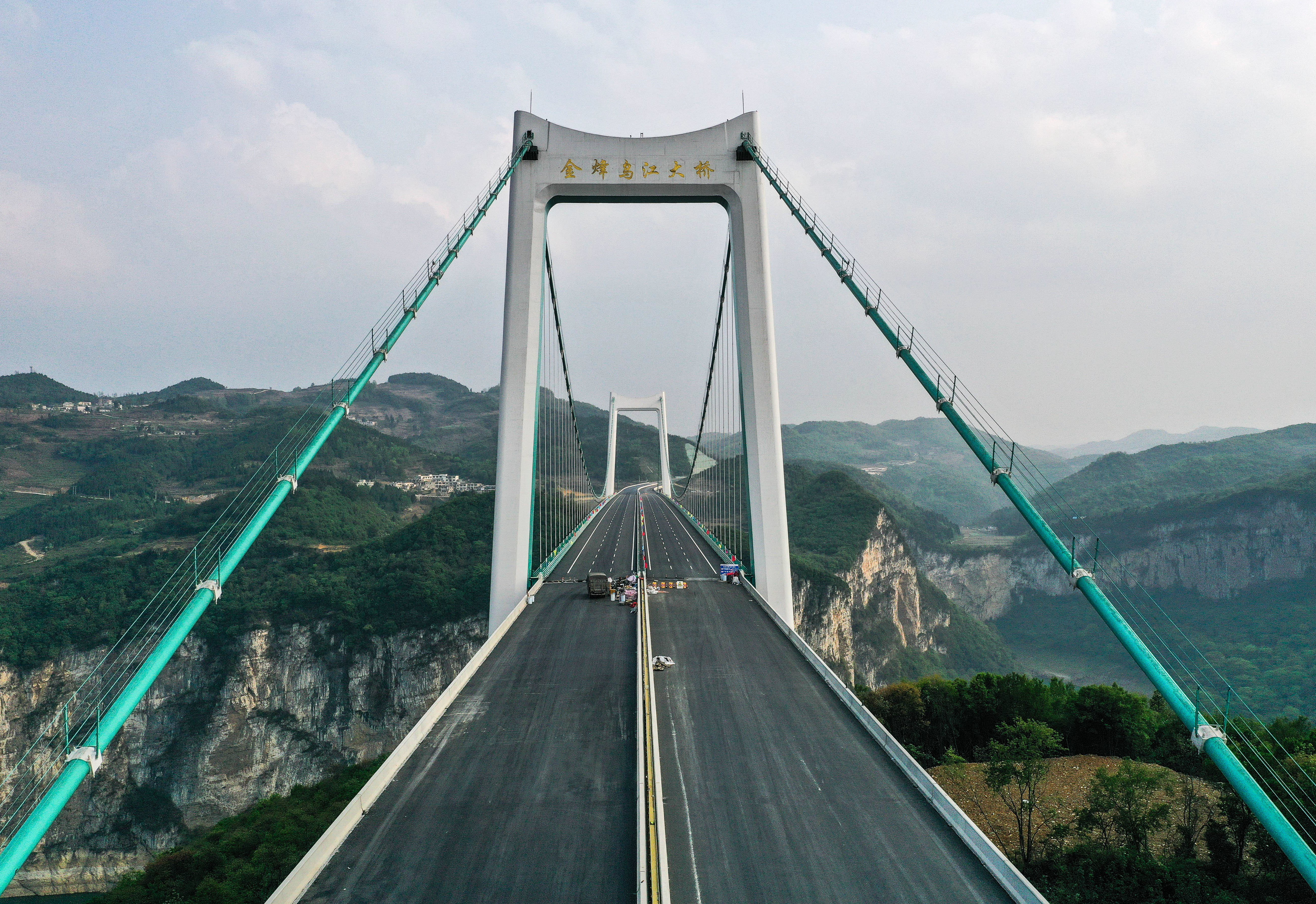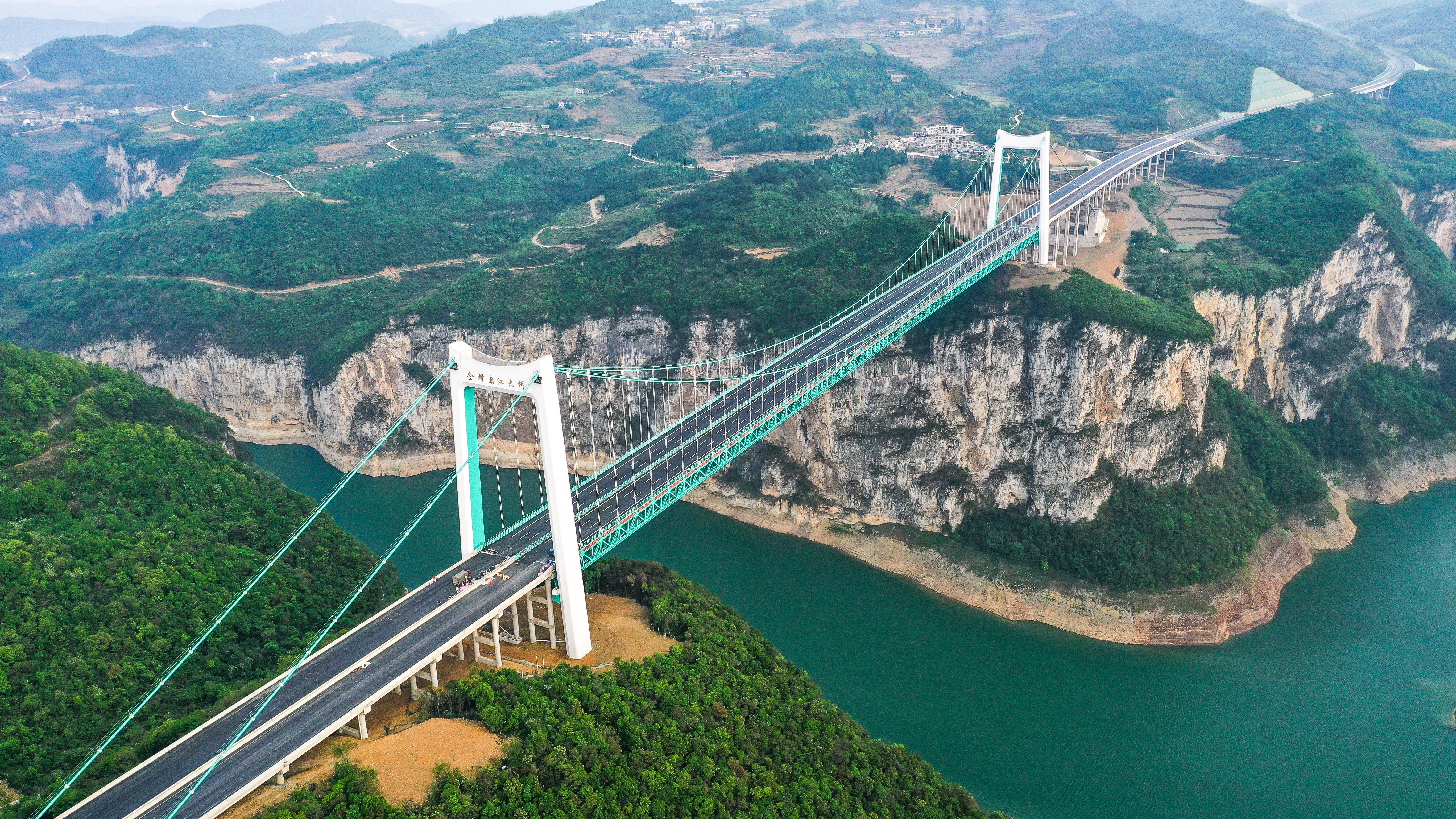 这是4月12日拍摄的金烽乌江大桥(无人机照片)。新华社记者 杨文斌 摄