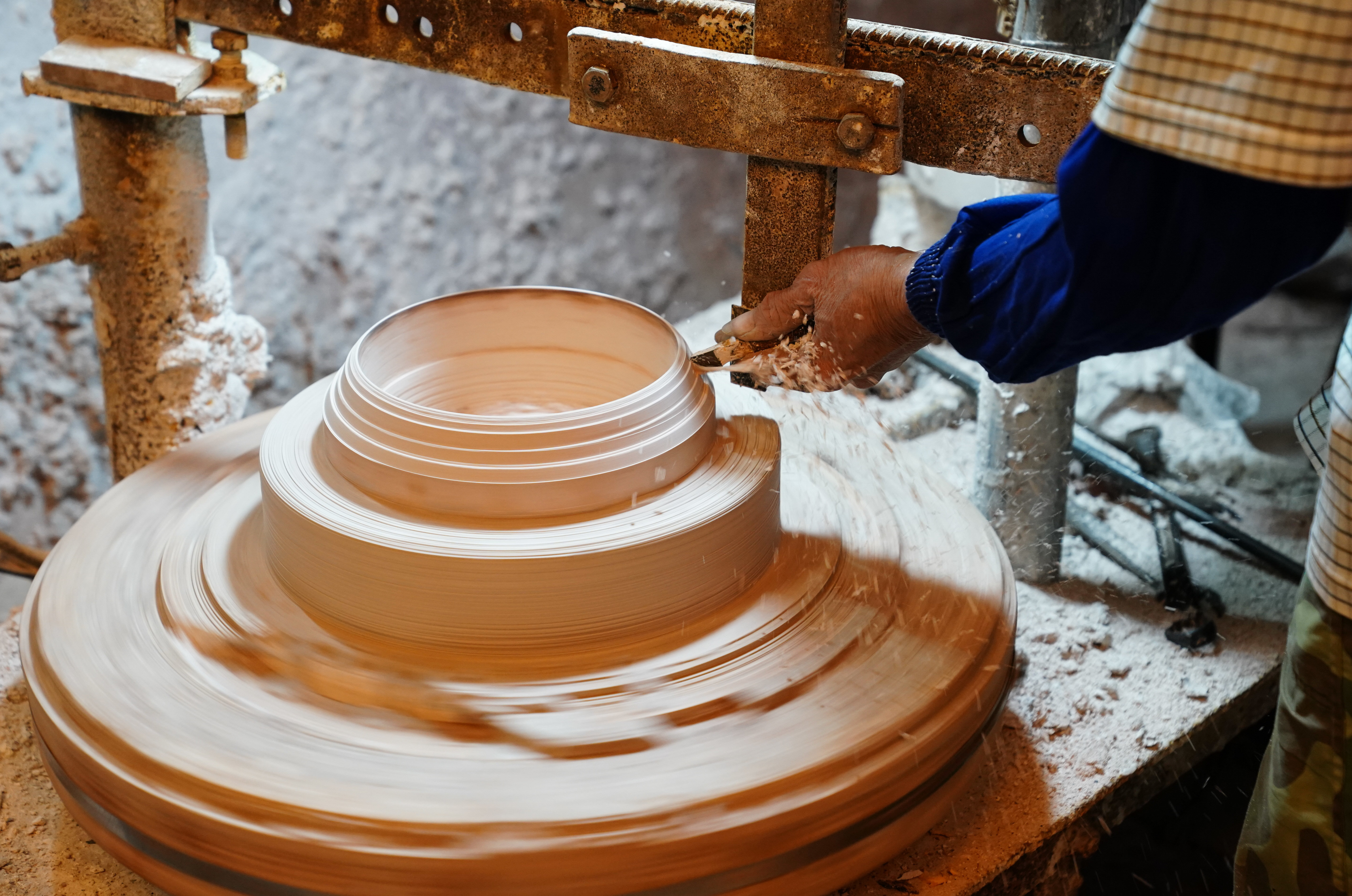 这是4月12日在广西省钦州市承坭斋坭兴陶生产车间拍摄的坭兴陶半成品。新华社记者 周佳谊 摄