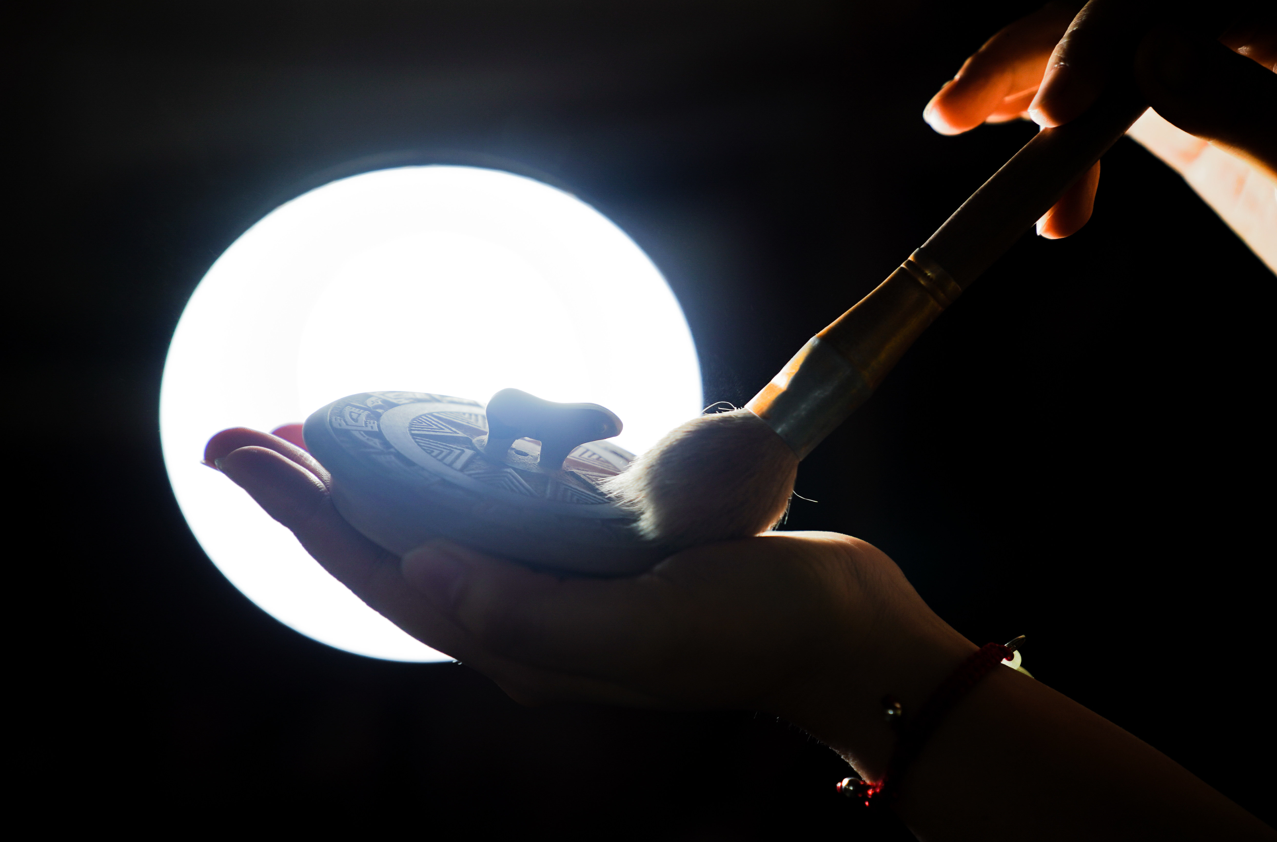 4月11日,在广西省钦州市,员工在坭兴陶生产车间进行拼接工作。新华社记者 周佳谊 摄
