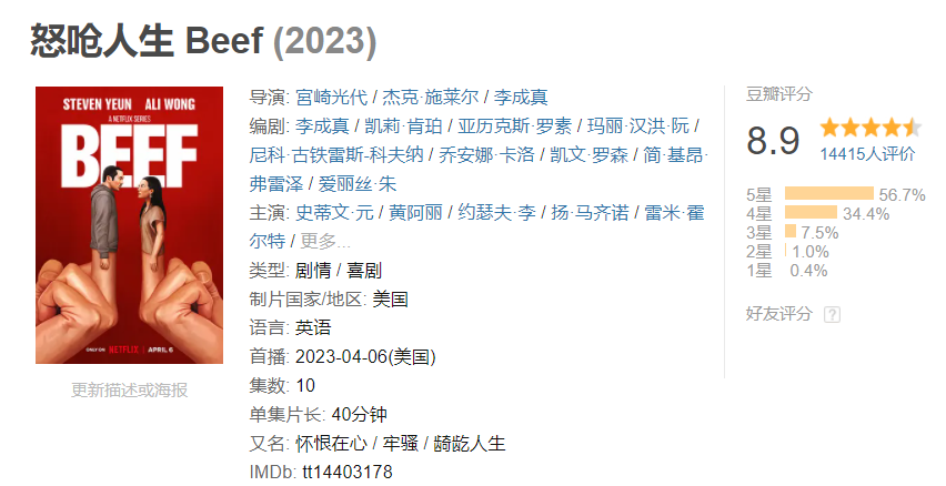 该剧在Netflix播出之后,豆瓣口碑开始发力,从开画的8.3分开始涨,现在已经冲到了8.9分。