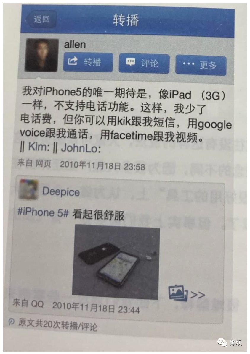 “我对iPhone5的唯一期待是,像iPad(3G)一样,不支持电话功能。这样,我少了电话费,但你可以用kik跟我短信,用Google Voice跟我通话,用Facetime跟我视频。”