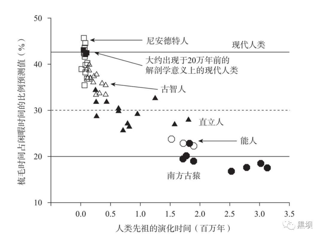 但随着群体的扩大,只有十根手指的人类祖先,逐渐意识到梳毛是梳不过来了。一开始,人类还寄希望于晚上增加篝火,延长梳毛的时间。但随着群体成员的进一步增加,在史前某个时刻,人类认识到必须要舍弃掉梳毛这一“传统落后”的社交方式了。
