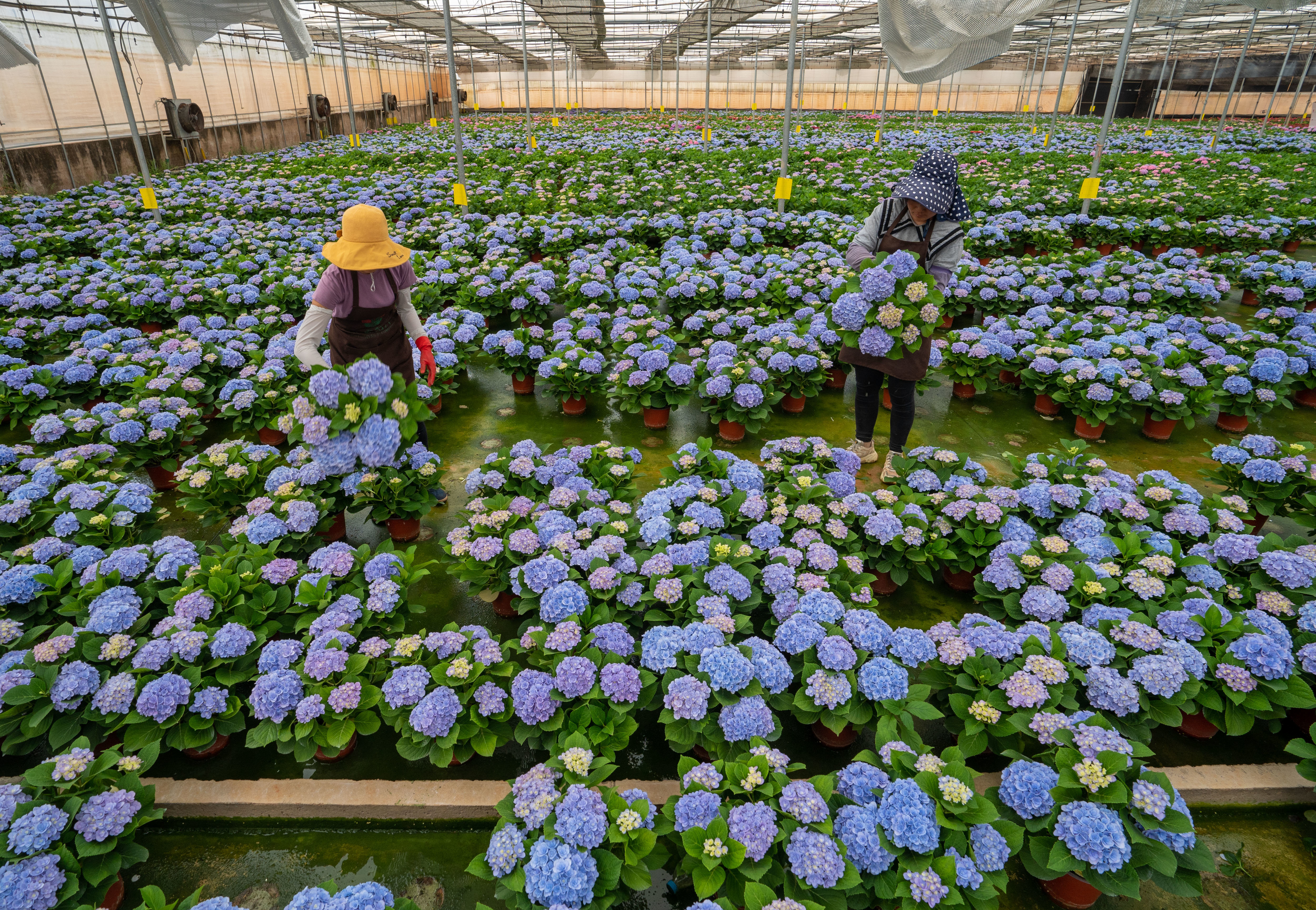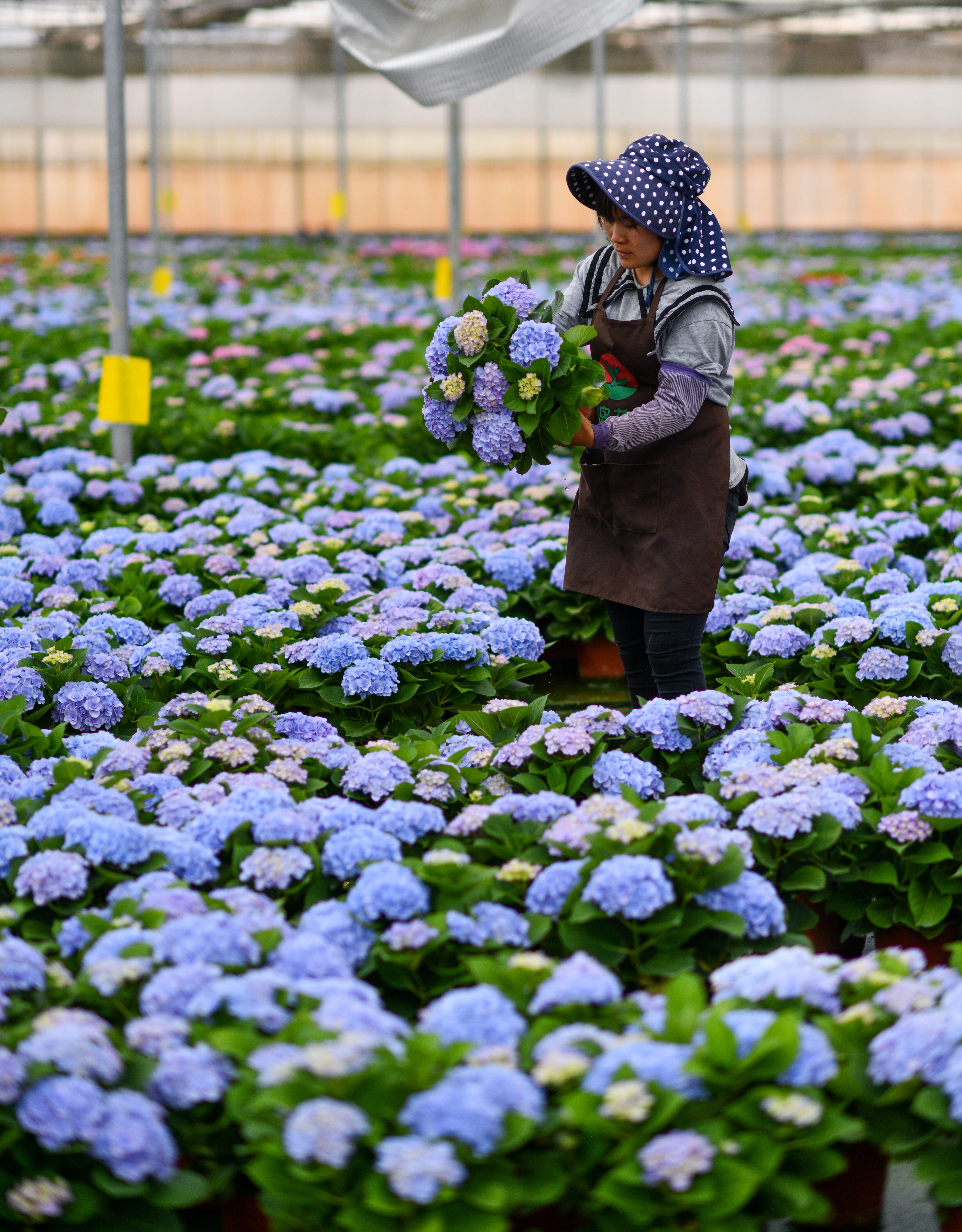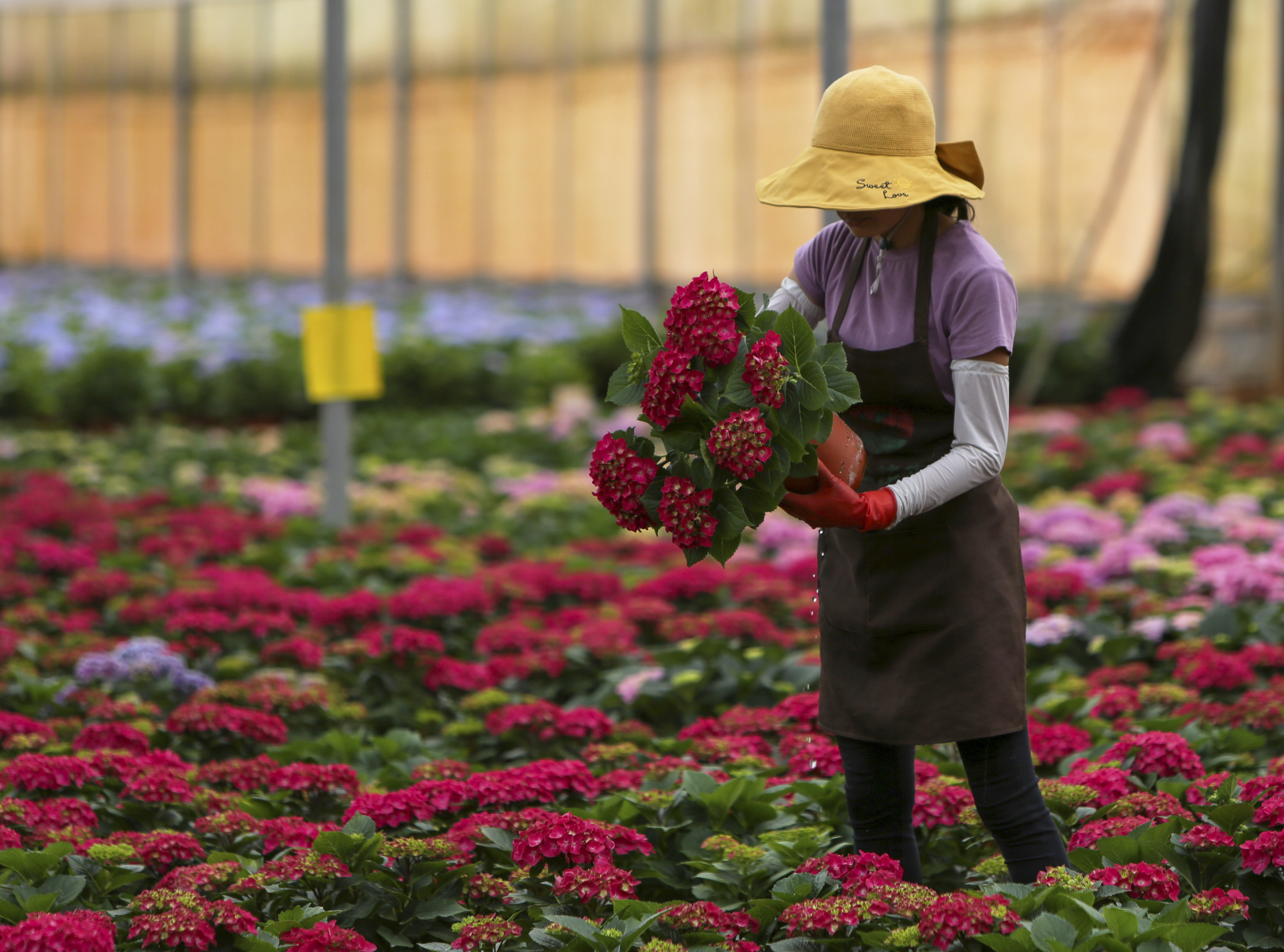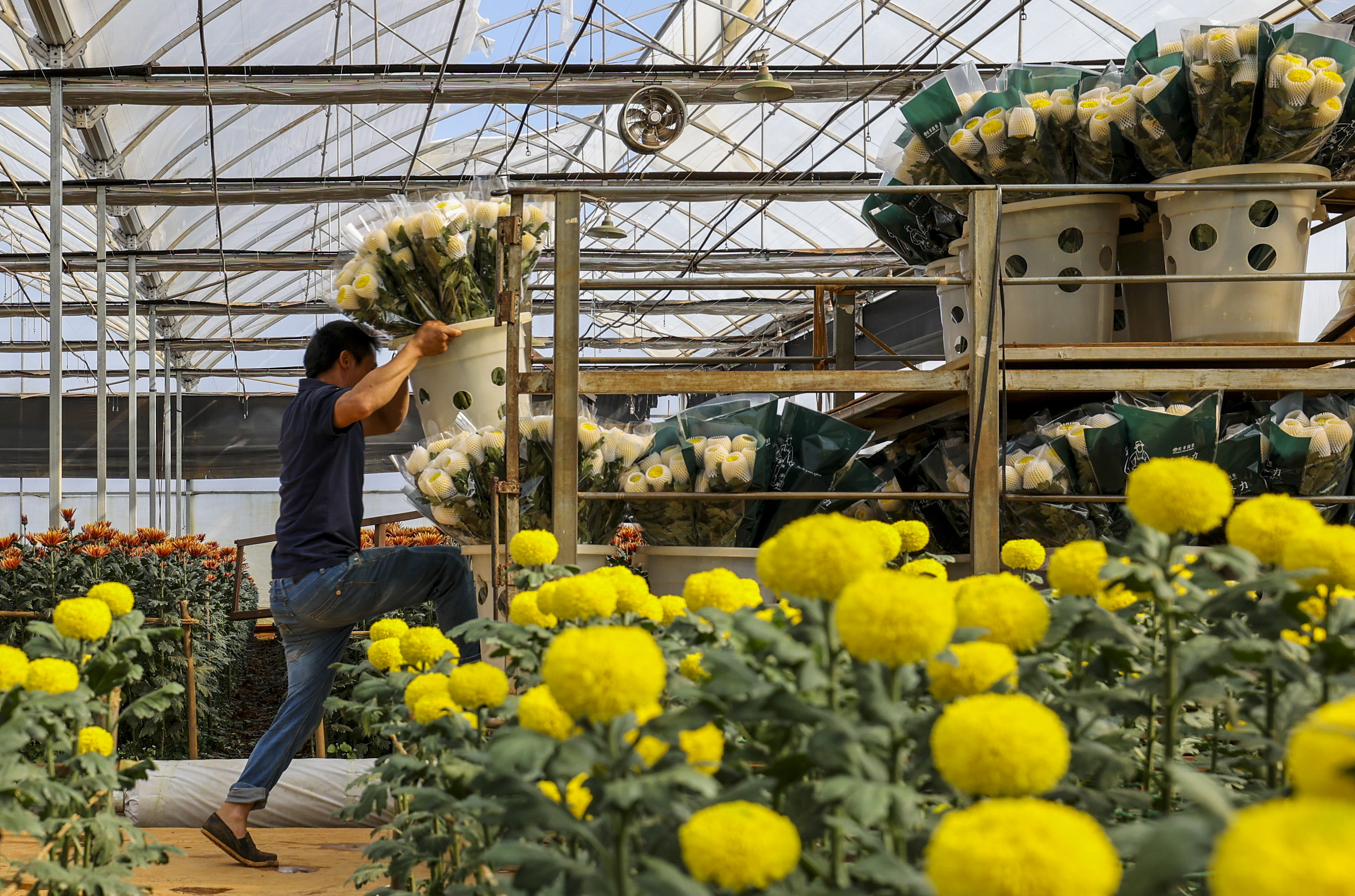 云南省开远市的花农采摘鲜花(3月22日摄)。新华社记者 崔文 摄
