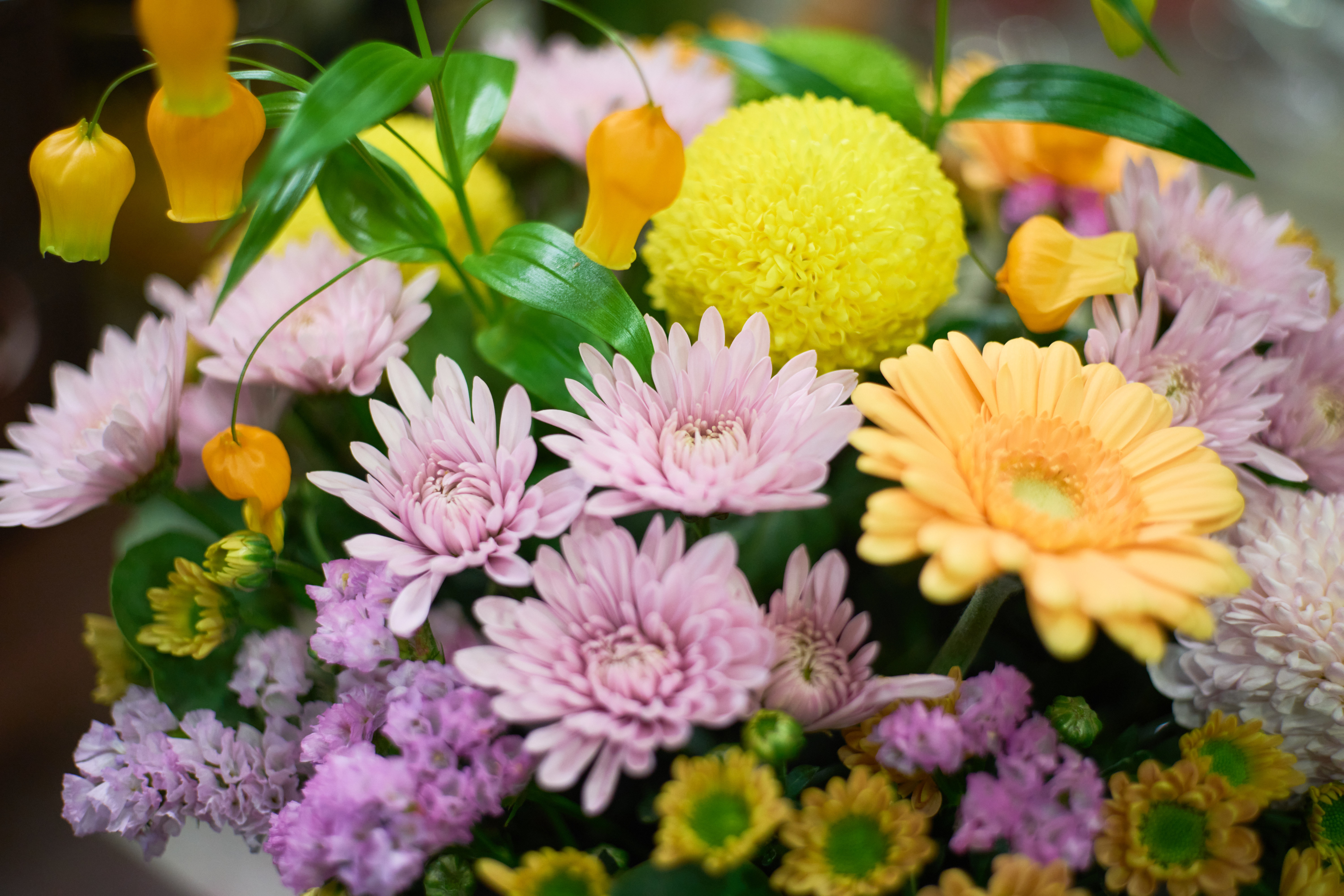 这是在日本千叶县千叶市一家花店内拍摄的花蓝。制作花篮的鲜花部分源自中国云南(4月3日摄)。新华社记者 张笑宇 摄