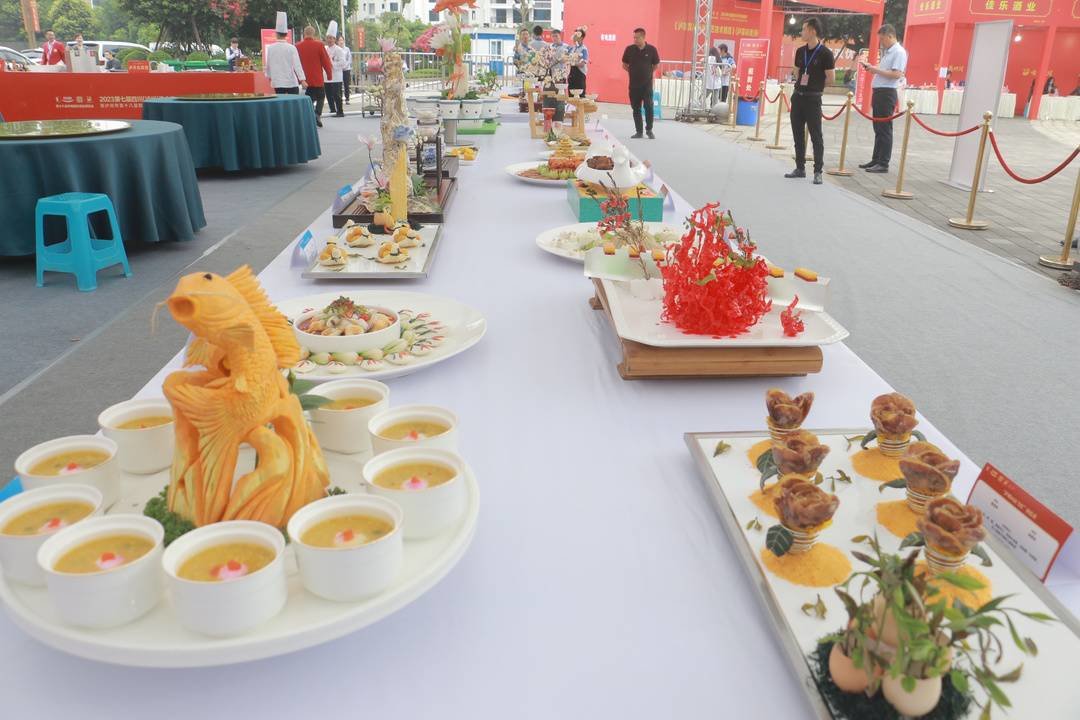 “好看!好香!好吃!”4月13日,在泸州市江阳区佳乐世纪城金融中心喷泉灯光广场,这样的赞许声不绝于耳。走近一看,广场搭设的展台上,各类佳肴琳琅满目,一桌满汉全席铺陈在眼前,掌勺师傅们精湛的制菜技艺也让人眼花缭乱,再一闻,酸、甜、咸、香,各种味道扑面而来,从鼻腔一直传递到了味蕾。