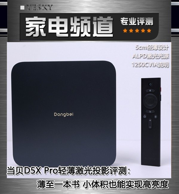 近日,当贝推出新一代轻薄智能投影仪——当贝D5X Pro,它在前代基础上进行了全新升级,采用影院激光投影厅同源的ALPD激光显示技术,将亮度提升至1250CVIA流明;拥有厚约5cm、重约1kg的机身体积,延续轻薄化、便携化的产品设计;搭载MT9669超强芯片以及4GB+32GB超大运存内存组合方案,从而进一步优化用户配置体验。下面天极网评测室将通过详细测评,带大家一起了解这款当贝轻薄激光投影D5X Pro。