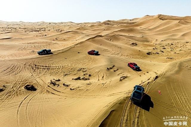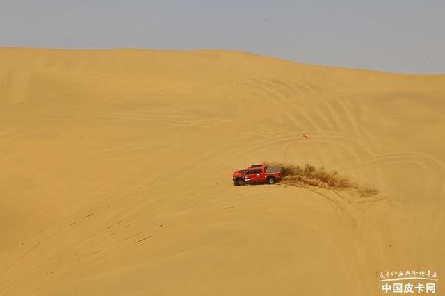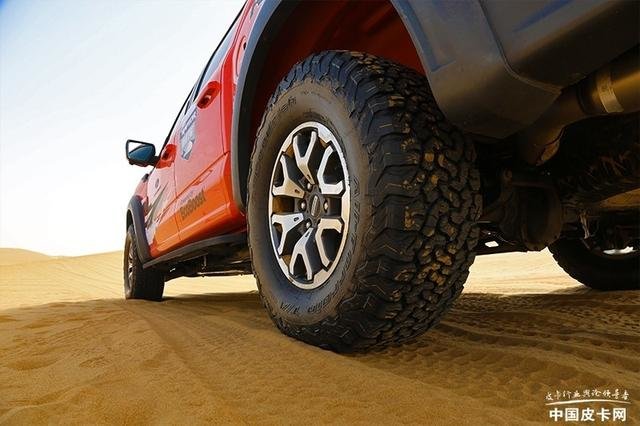 在我们的培训项目中,会有一些爬沙山的项目,甚至是几乎垂直于刀锋的直上直下。全新猛禽凭借着以上这些性能的加持,只要你深踩油门加速到底,即使是新手也可以冲到接近沙山顶部的位置。需要转向下来的时候,精确的方向控制和轮胎的循迹性也可以轻松转身,进退自如。可以说有了这套发动机+变速箱+分动箱+轮胎的整条动力传输系统,已经能够让猛禽在沙漠中应对大部分路况了。
